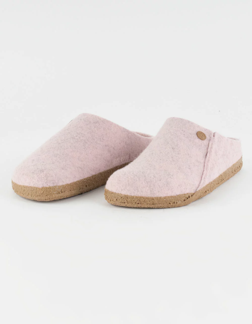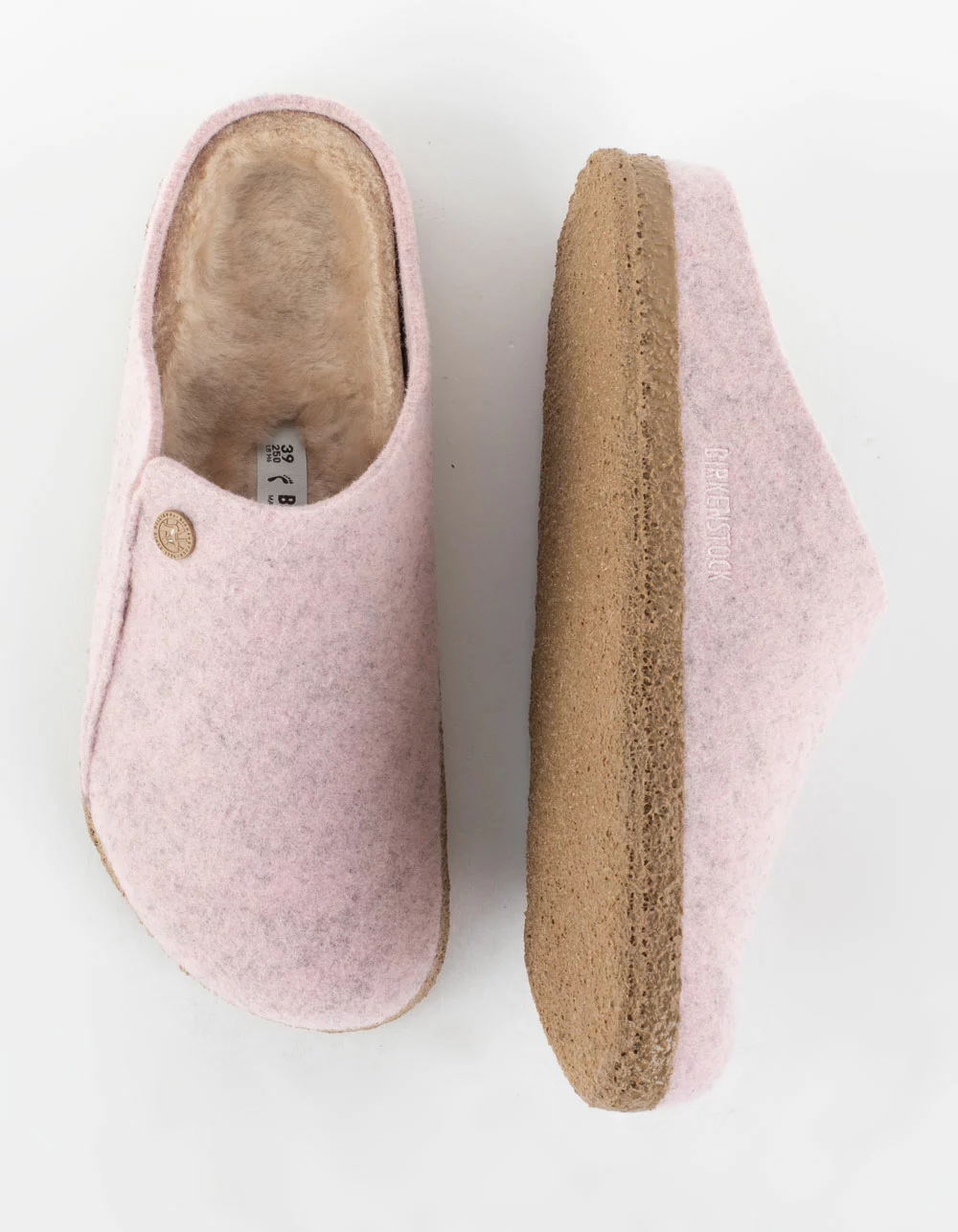 Birkenstock Zermatt Shearling Slippers. The BIRKENSTOCK Zermatt is our first true slipper. It features our iconic cork latex footbed, and to keep you extra cozy, it’s fully lined in genuine shearling that will keep your feet warm all winter long. The upper consists of soft genuine wool. Anatomically shaped cork/latex footbed lined with shearling. Imported.