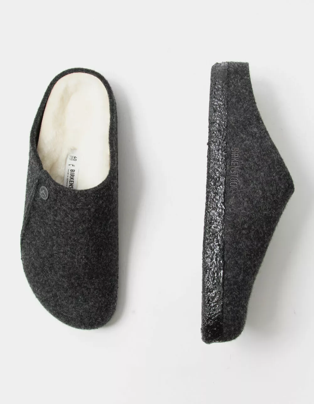 The BIRKENSTOCK Zermatt is our first true slipper. It features our iconic cork latex footbed, and to keep you extra cozy, it’s fully lined in genuine shearling that will keep your feet warm all winter long. The upper consists of soft genuine wool. Anatomically shaped cork/latex footbed lined with shearling. Imported.