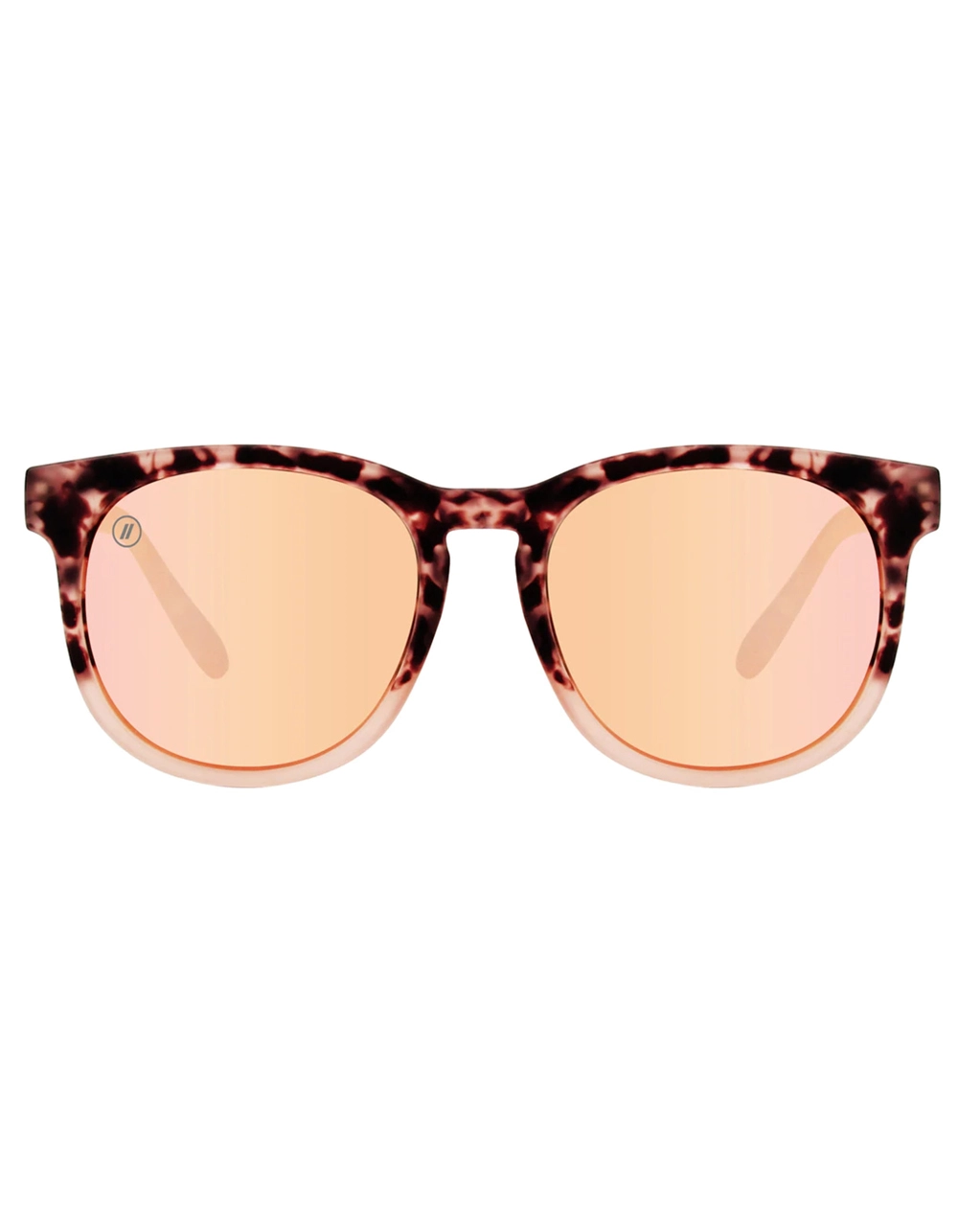 Blenders Eyewear Heart Rush Sunglasses. Send pulses racing with ‘Heart Rush.’ These ‘H Series’ sunnies combine an exceptionally durable polycarbonate frame and glare-reducing polarized lenses with a lustworthy colorway. The champagne mirror lenses heat things up in a hurry, sure, but the way the rubberized matte frame flows from a peach & black tortoise to a pure peach finish is breathtaking. With these on, expect passions to flare. Rubberized matte crystal peach + black tortoise frame. Polarized champagne mirrored lenses. 100% UV Protection. Imported.