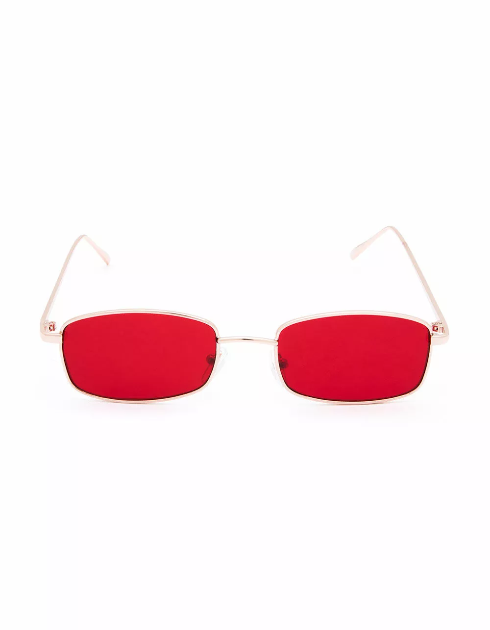 Full Tilt Breezy square sunglasses. Metal frames and arms. Squared red lenses. 100% UV protection. Imported.