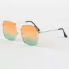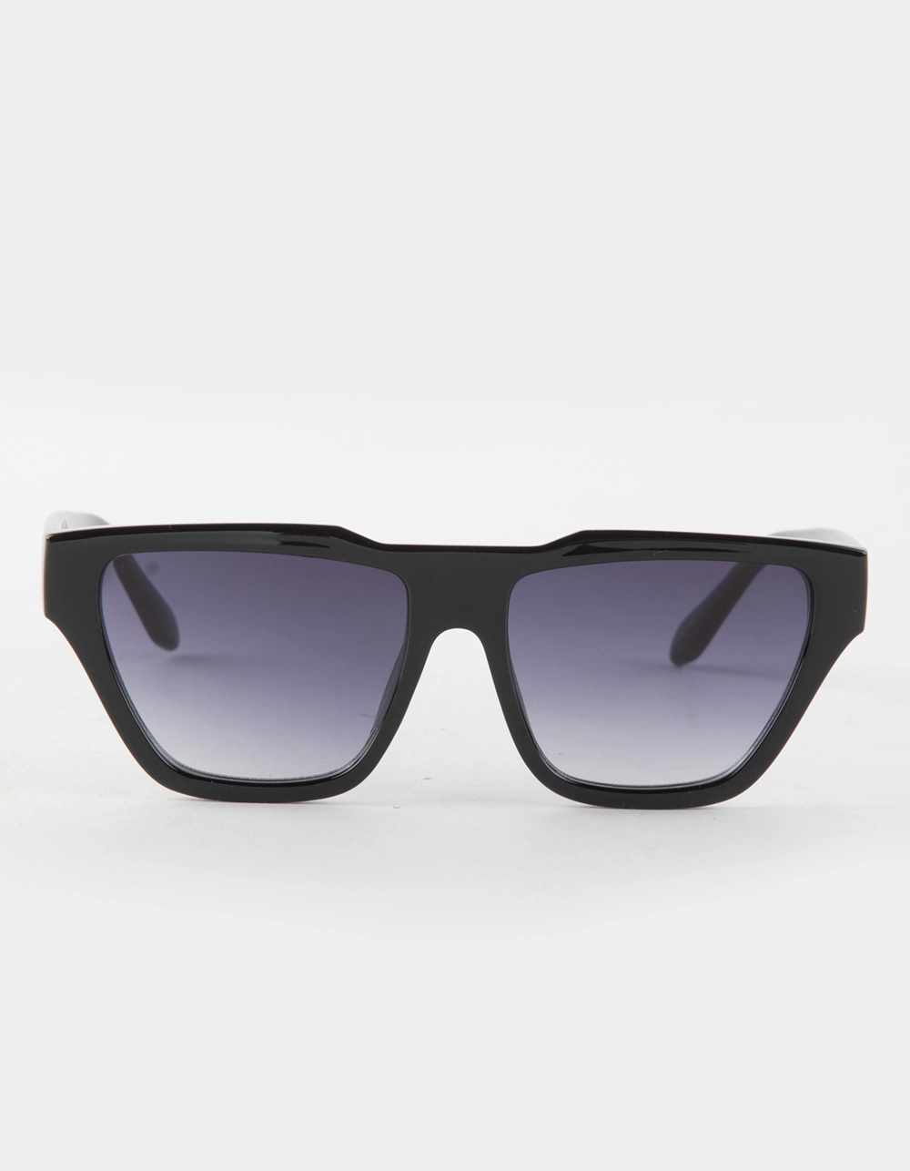 Blue Crown Plastic Flat Top Sunglasses. Large gradient lenses. Plastic frames. Flat top styling. Imported.