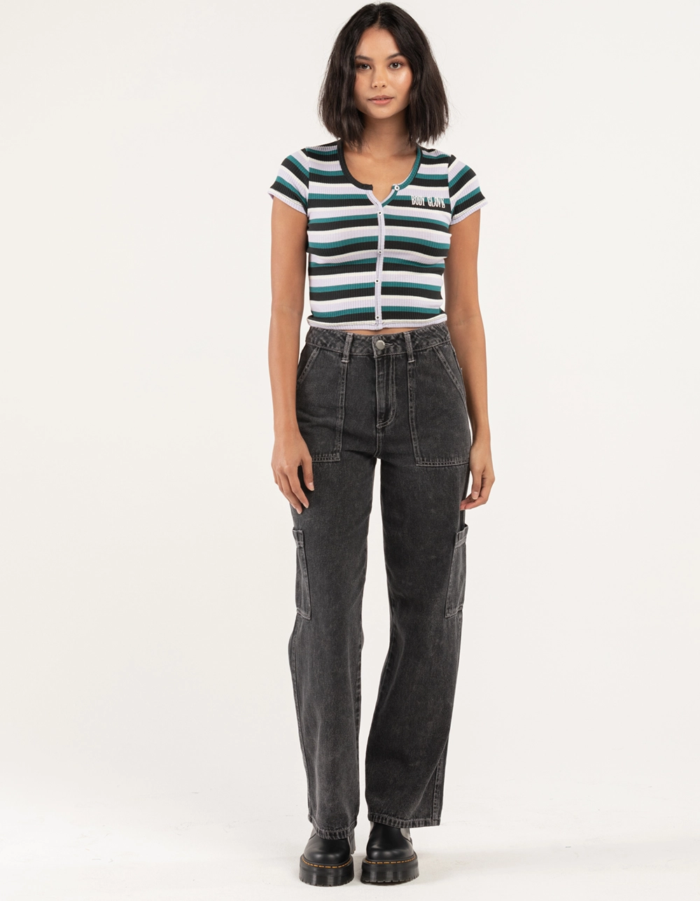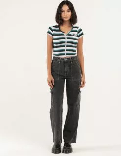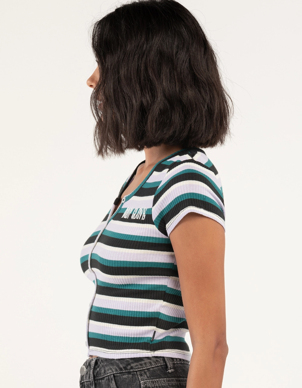Body Glove Stripe Tee. Stripe pattern. Button front. Embroidery on left chest. Short Sleeves. Ribbed texture. 98% Cotton 2% Spandex. Machine wash. Imported.