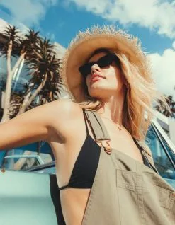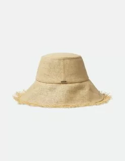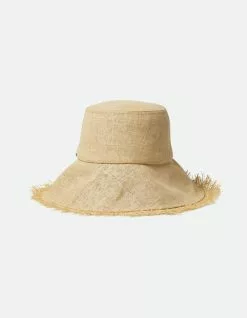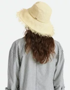 Brixton Alice Packable Bucket Hat. The Alice Packable Bucket Hat is a circular raw-edge hat crafted from 100% straw. An essential for your beach bag and paradise packing list, it provides 50+ UPF coverage. Metal headwear plaque. Fringe edge. 3.75″ brim length. 100% packable paper straw. Imported.