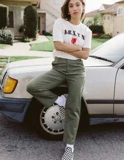 Brixton Capitol Chino Pants. Zipper fly with button closure. Belt loop wait. Slant hand pockets. Back welt pockets. Straight leg. Approx. inseam: 26.25”. 59% Cotton, 39% Polyester, 2% Elastane. Machine wash. Imported.