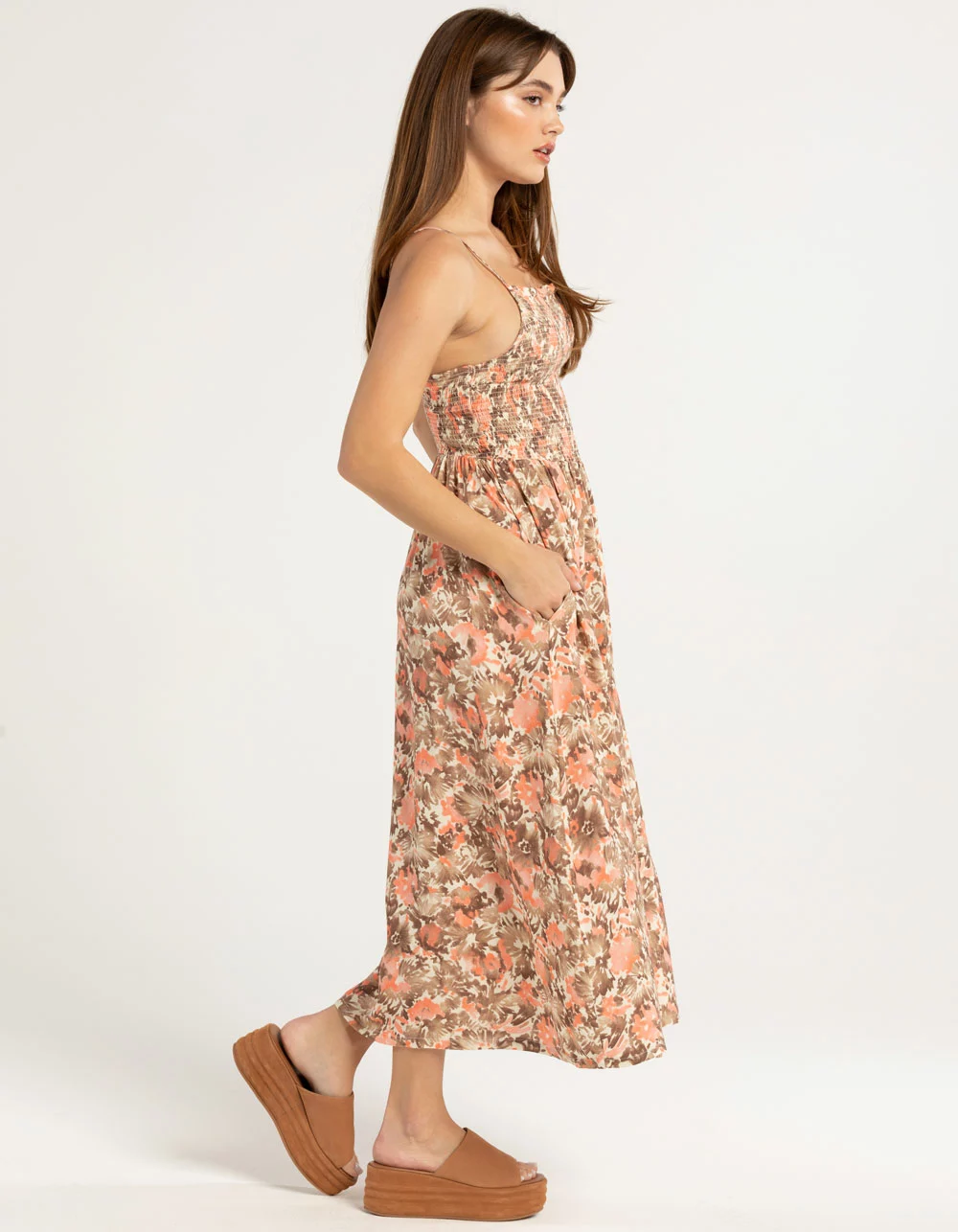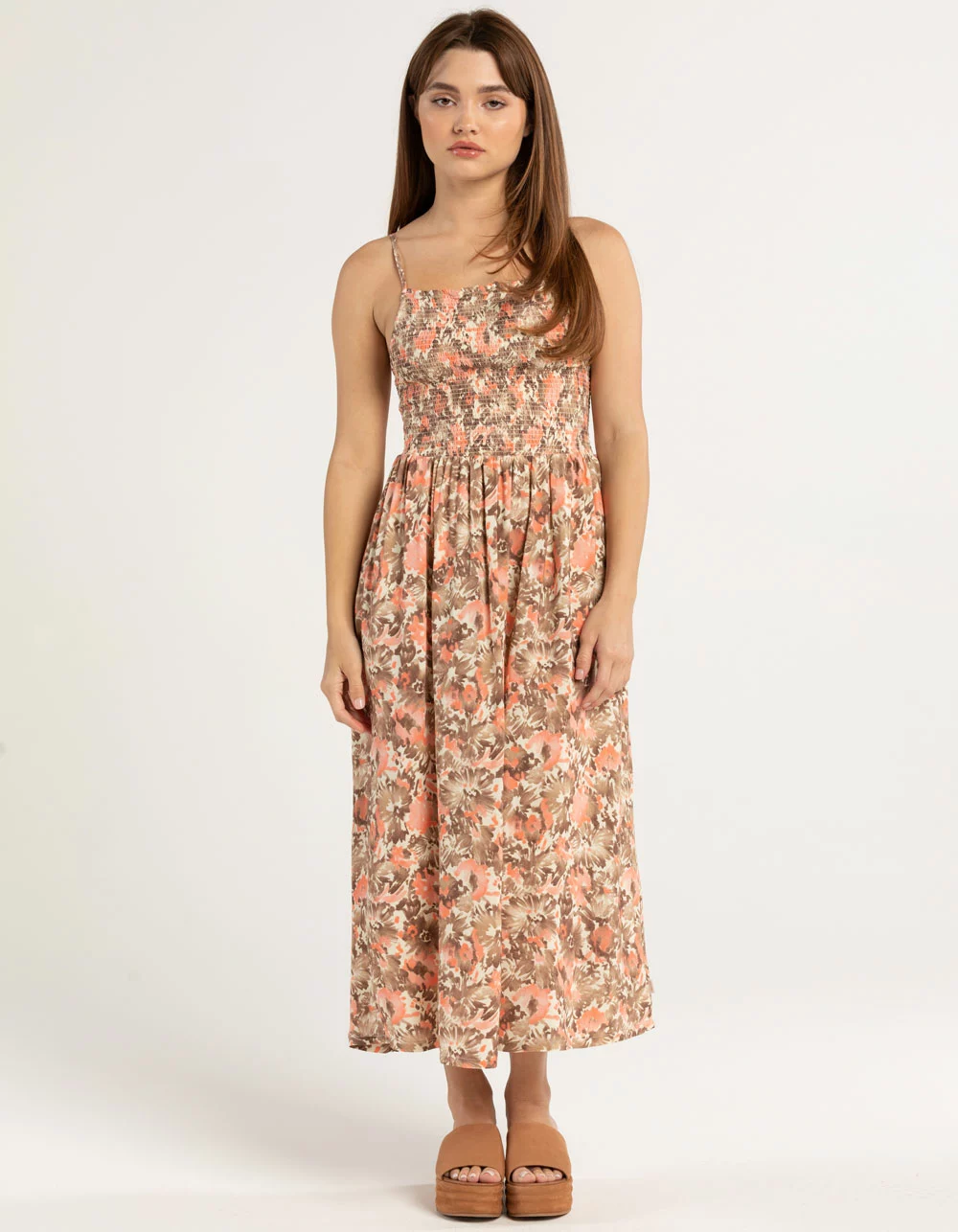 Brixton Capri Midi Dress. There’s something so blissful about a summer dress. This sleeveless number is designed with a timeless midi length and smocked bodice. Crafted with silky viscose that captures every movement. Adjustable O-ring straps. 44” from high point of shoulder to hem. Standard fit. 100% Viscose. Machine wash. Imported.