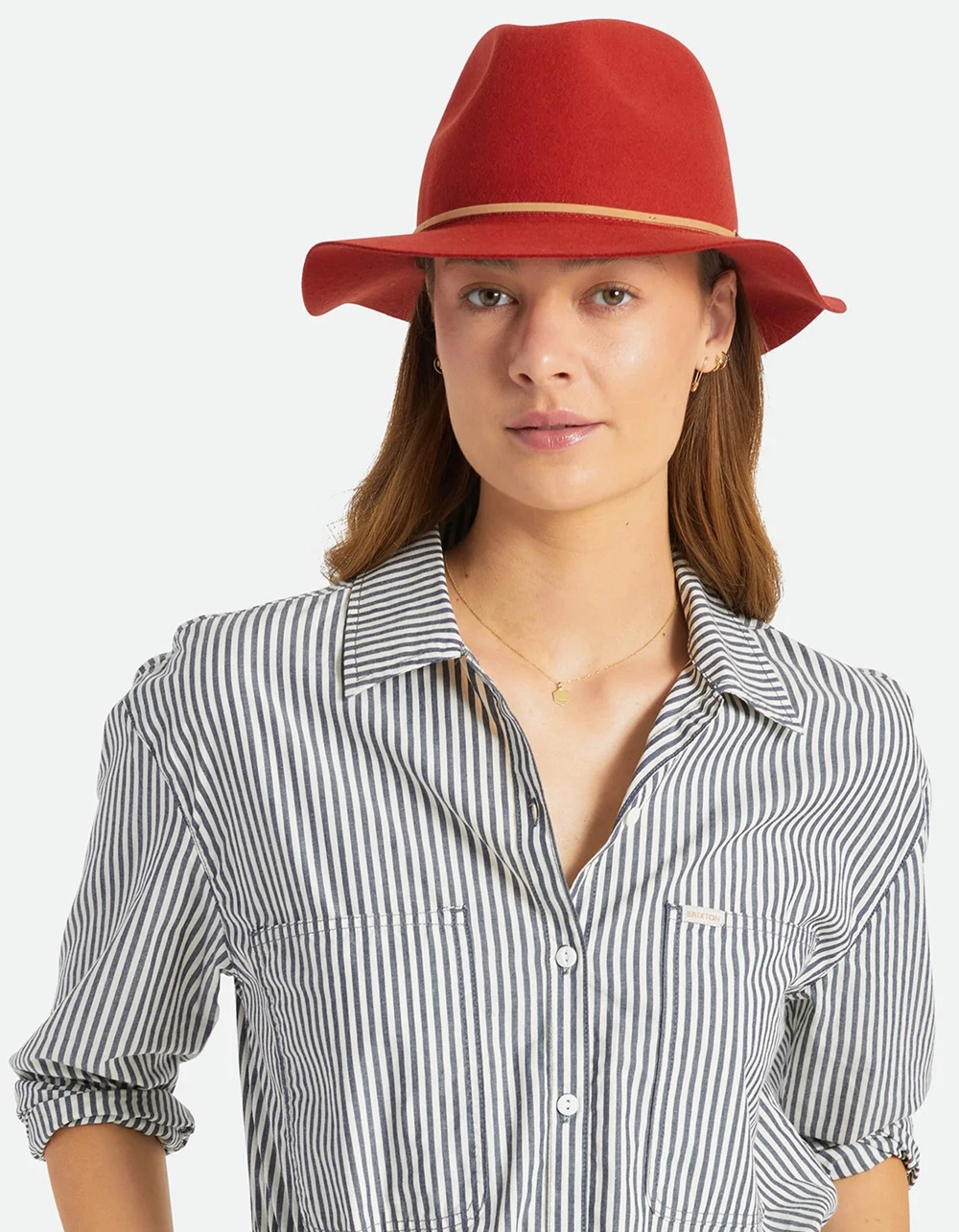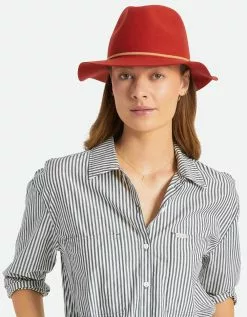 Brixton Packable Wesley Fedora. The Wesley Packable Fedora folds up and packs away for traveling. Made of felt with a 100% genuine leather band, metal headwear plaque, and an adjustable velcro strap under the sweatband. A great everyday hat that’s ready for your next adventure. 100% wool felt. Imported.