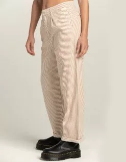 Brixton Victory Pants. All-over stripe print. Zipper fly with a hook-an-eye closure. Belt loop waist. Slant hand pockets. Back welt pockets. Straight leg and high waist. 100% Cotton. Machine wash. Imported.