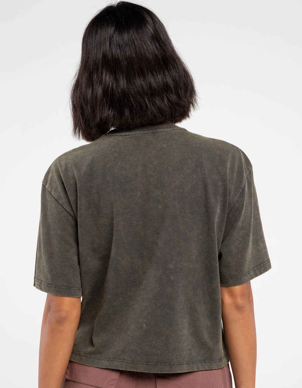 Brixton Wellness Skimmer Tee. Graphic on front. Acid wash. Ribbed crew neckline. Short sleeves. Skimmer fit. 100% Cotton. Machine wash. Imported.