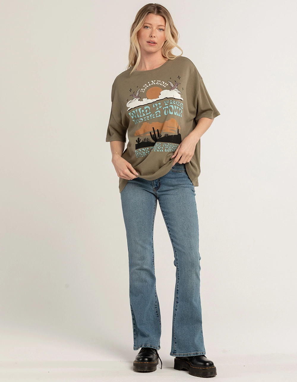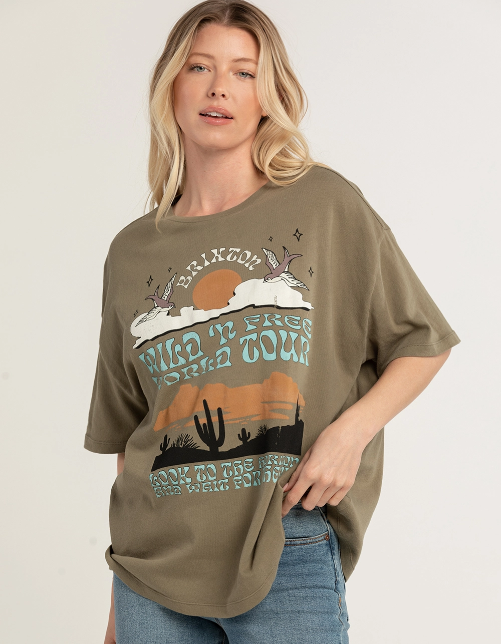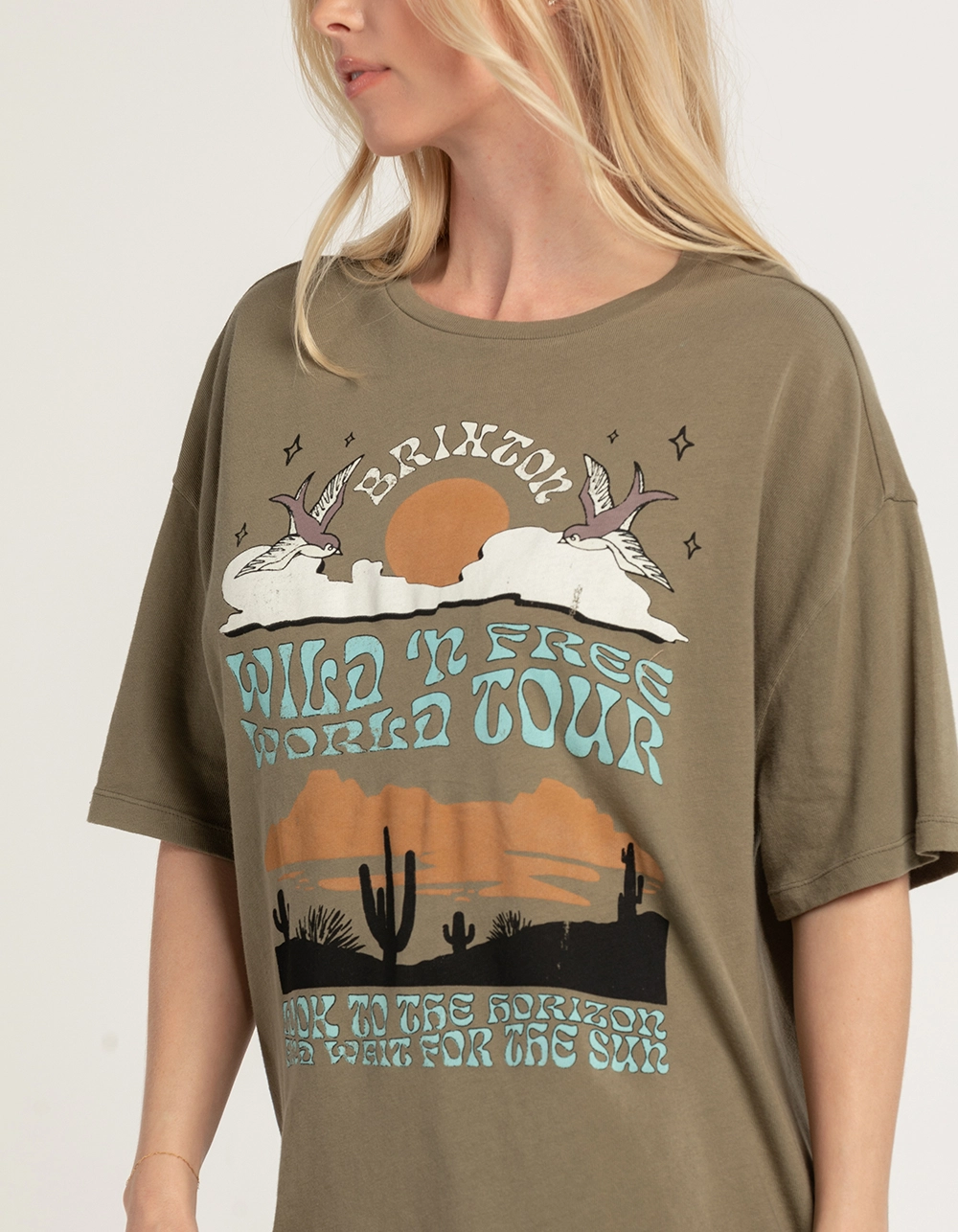 Brixton Wild ‘N Free Oversized Tee. Large graphic on front. Ribbed crew neckline. Short sleeve. Oversized fit. 100% Cotton. Machine wash. Imported.