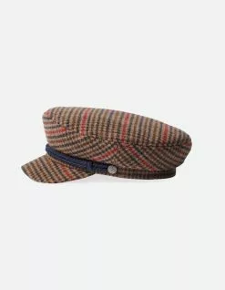 Broxton Fiddler Hat. The Fiddler is an iconic cut-and-sew cap made with mixed fabrics. The exterior is detailed with a double layer cored and metal logo pin. Back embroidery detail. Metal rivet pin. 90% Polyester 10% Wool. Do not wash. Imported.