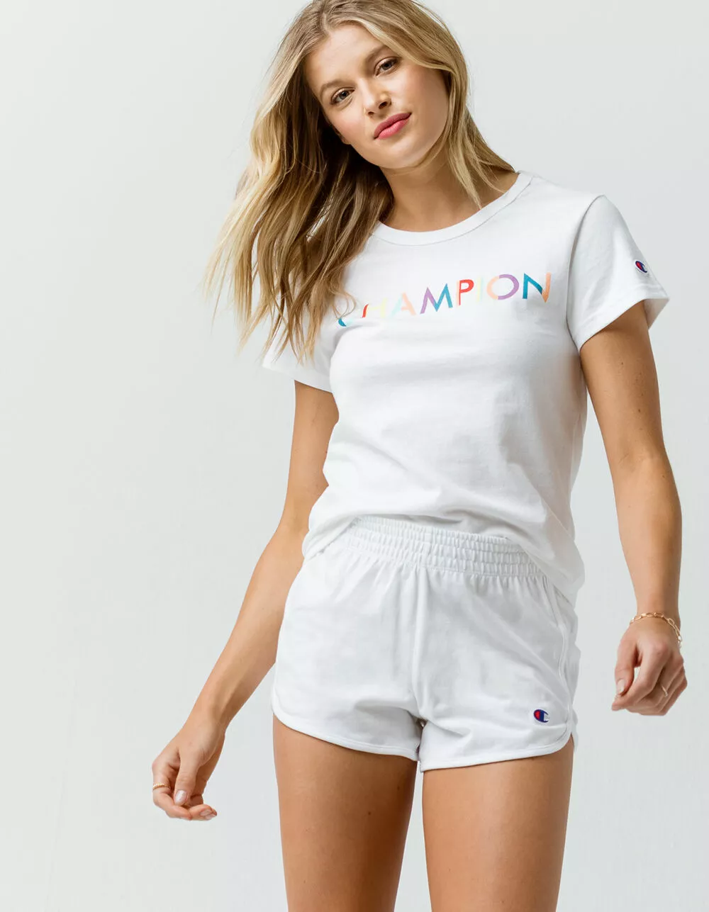 Champion Reverse Weave Gym Shorts. Retro-cool Gym Shorts get a soft re-make in heavyweight cotton jersey. Mid-rise elastic waistband and old school dolphin leg. Bound dolphin leg hem. Classic, relaxed fit. C patch logo at left leg. Inseam: 2.5″. 100% cotton. Machine wash. Imported.