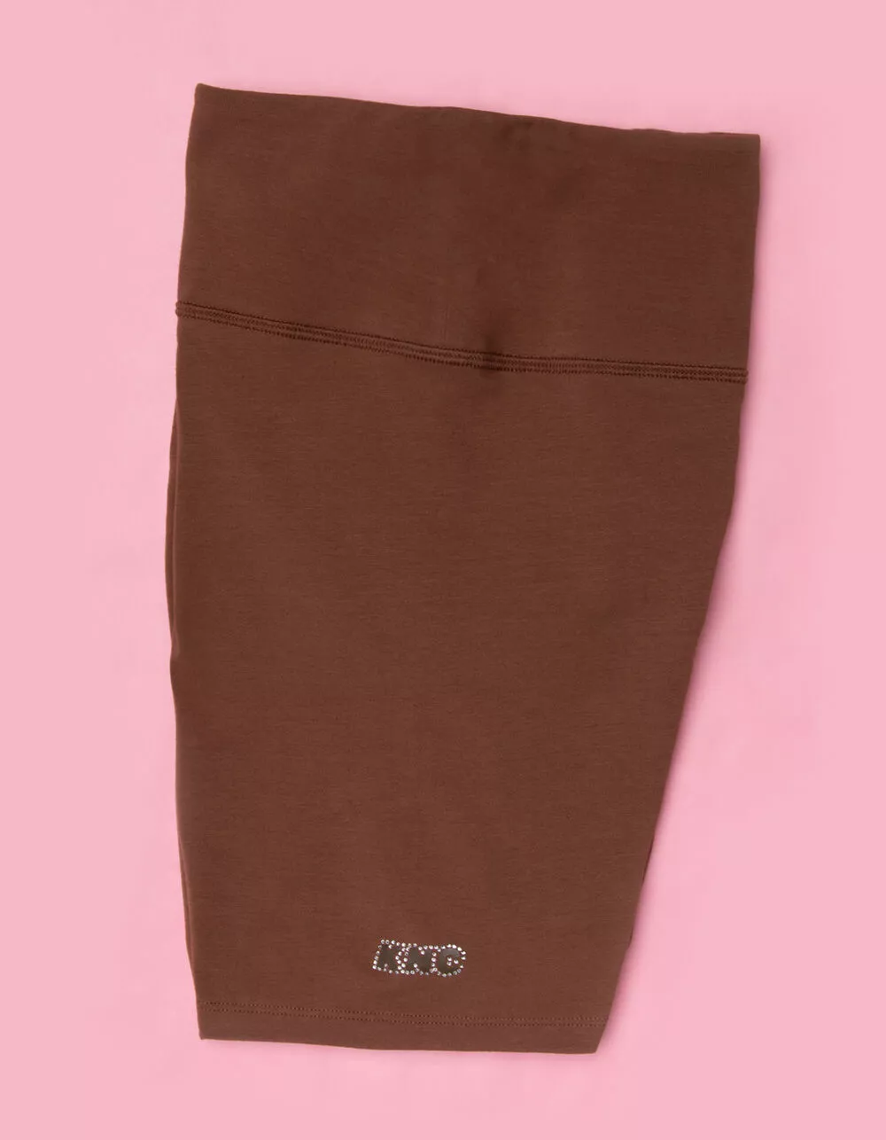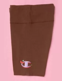 Cotton spandex biker shorts. Champion “C” logo at left side leg and rhinestone KNC logo at right side leg. Banded waist. Fitted silhouette. 90% cotton/10% spandex. Machine wash. Imported.
