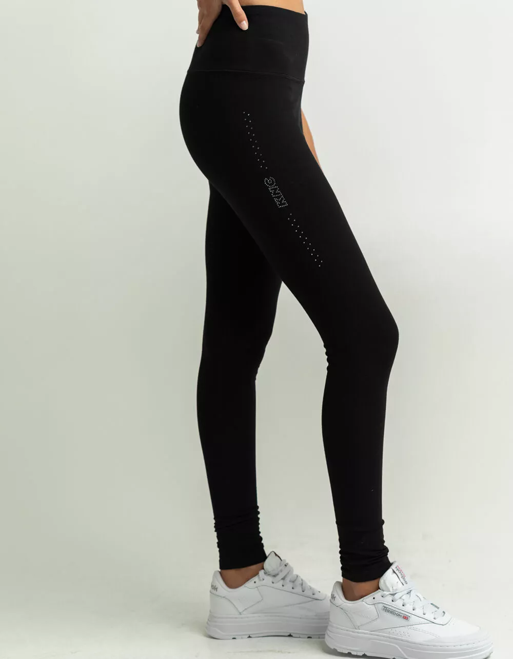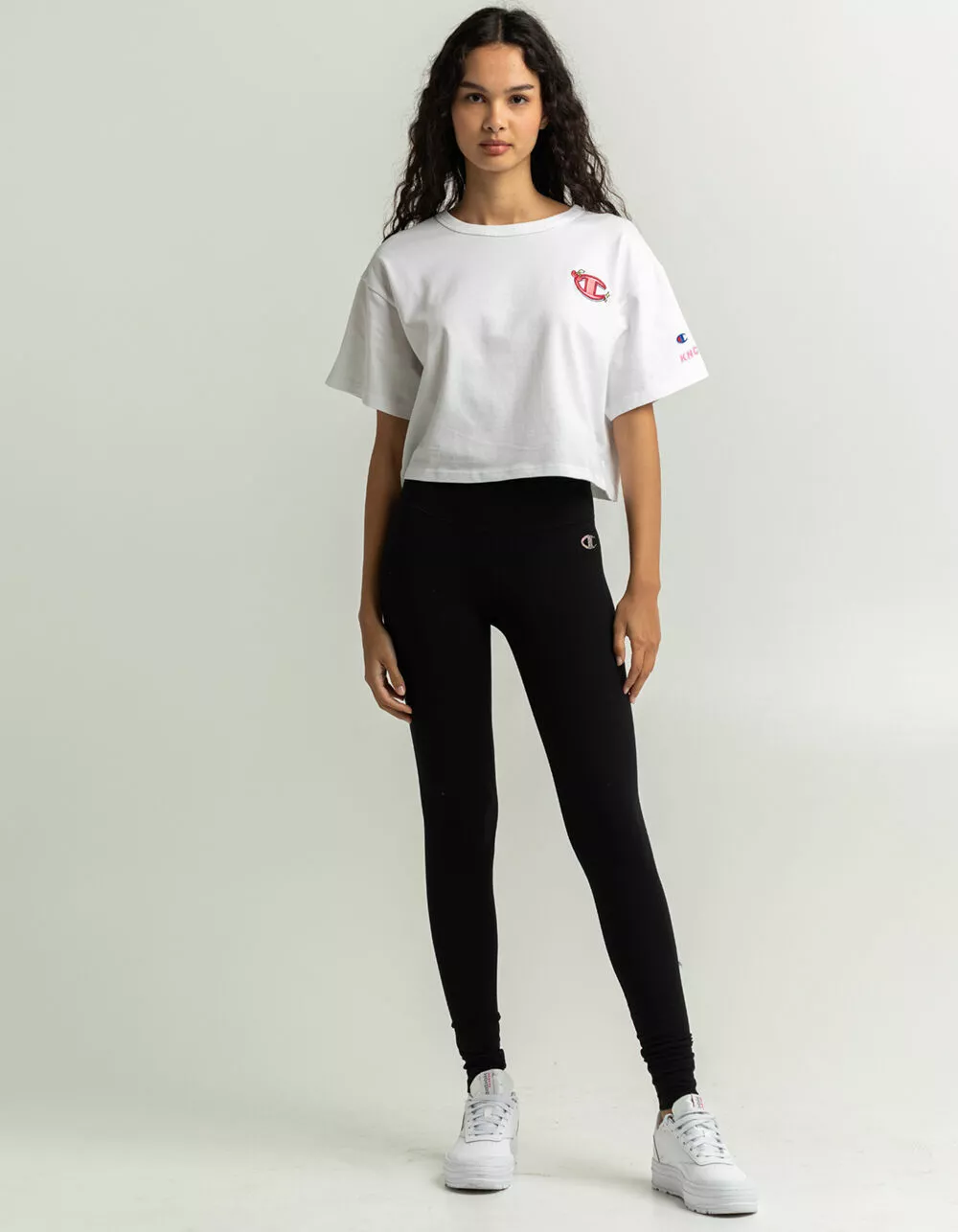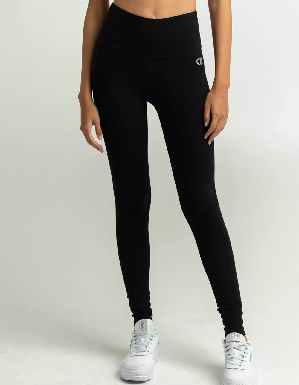 Champion x KNC Beauty Everyday Leggings. Solid color. Embellished logos on left and right leg. Stretchy cotton leggings. Elastic waist. Fitted throughout. Approx. Inseam : 29″. Machine Wash. 90% Cotton 10% Spandex. Imported.