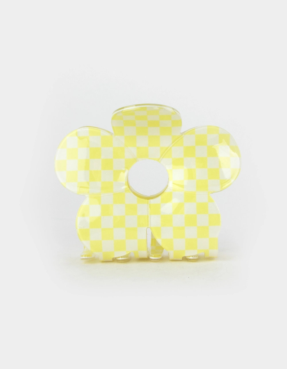 Checkered Floral Hair Clip. Allover checkered print. Foral design. Imported