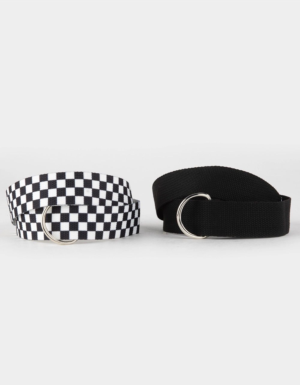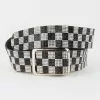 Checkered & Solid Web Belt 2 Pack. Includes one black and white checkerboard web belt and one solid black web belt. Approximate width: 1.5″. Approximate length: 39″. Imported.