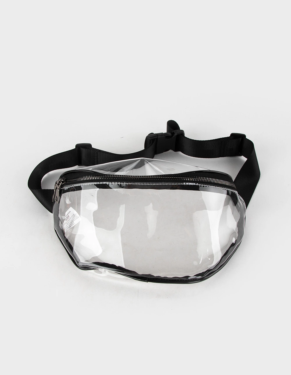 Womens Clear Waist Pack. Clear on all sides. Black seams. Zipper closure. Imported.