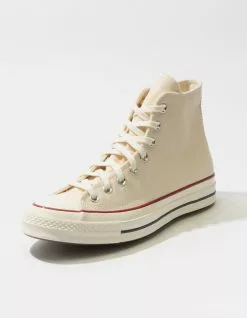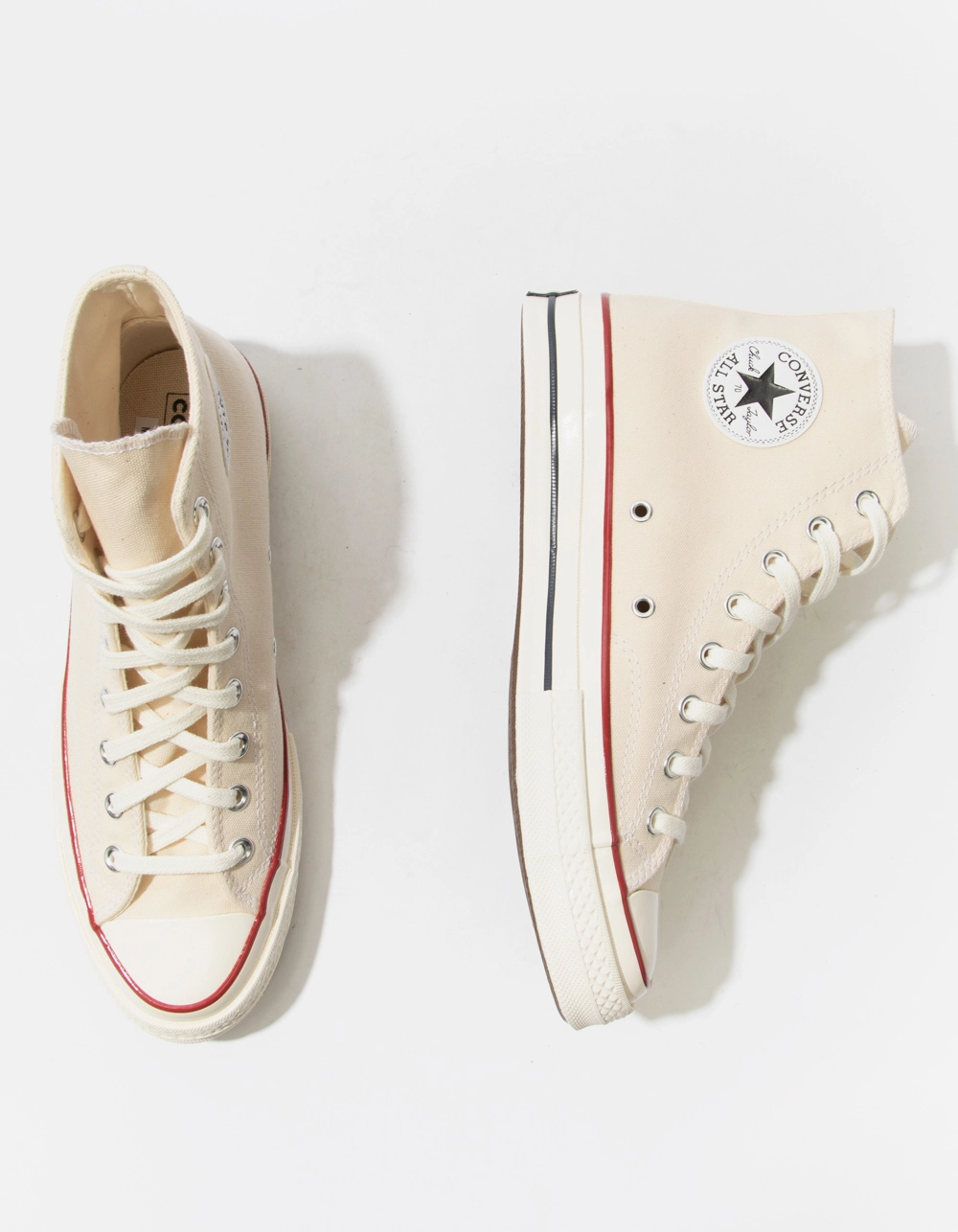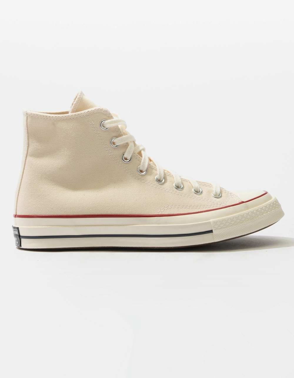 Converse Chuck 70 High Top Shoes. More cushioning, tougher canvas, same versatility. The Chuck 70 High Top is built off of the original 1970s design, with premium materials and an extraordinary attention to detail. We added an extra cushy insole for arch support and stability, and used wing tongue stitching on 12oz canvas for durability. No reason not to wear them all day, every day. Canvas upper is lightweight and durable. The timeless silhouette you know and love. Rubber outsole for added traction. OrthoLite insole for comfort. Vintage license plate. Imported.