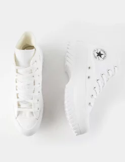 Converse Chuck Taylor All Star Lugged 2.0 High Top Shoes. With a cotton canvas upper and a breathable mesh lining, these lugged platforms come ready to take on the season. A tall rubber sidewall offers added protection, plus bold, chevron-inspired tread for style and stability. Classic neutrals pair easily with anything and everything in your closet. High-top platform sneaker-boot with canvas upper. OrthoLite cushioning for all-day comfort. A mesh lining keeps it breathable. Lugged rubber outsole with chevron-inspired tread for traction. Iconic Chuck Taylor ankle patch. Imported.