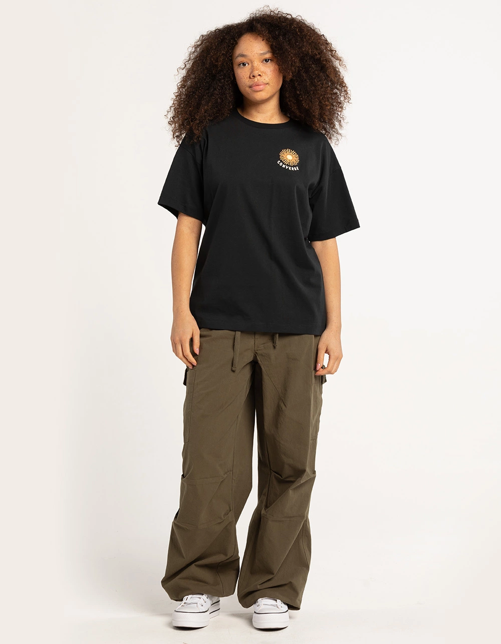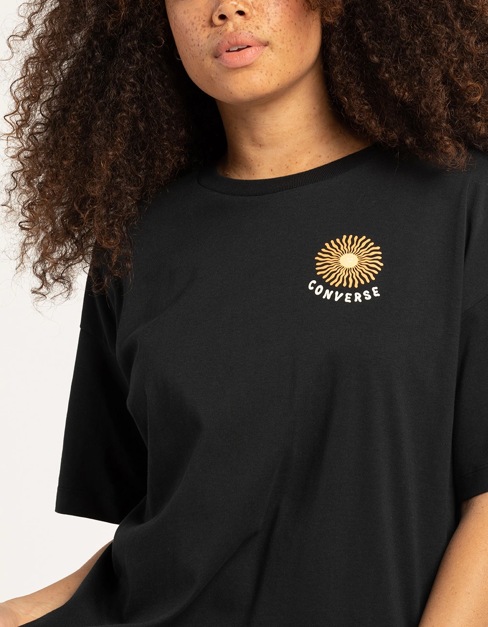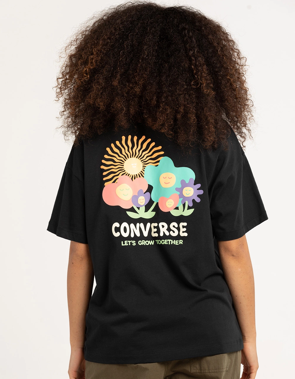Converse Grow Together Oversized Tee. Graphic screened on left chest. Large graphic on back. Ribbed crew neckline. Short sleeve. Oversized fit. 100% Cotton. Machine wash. Imported.