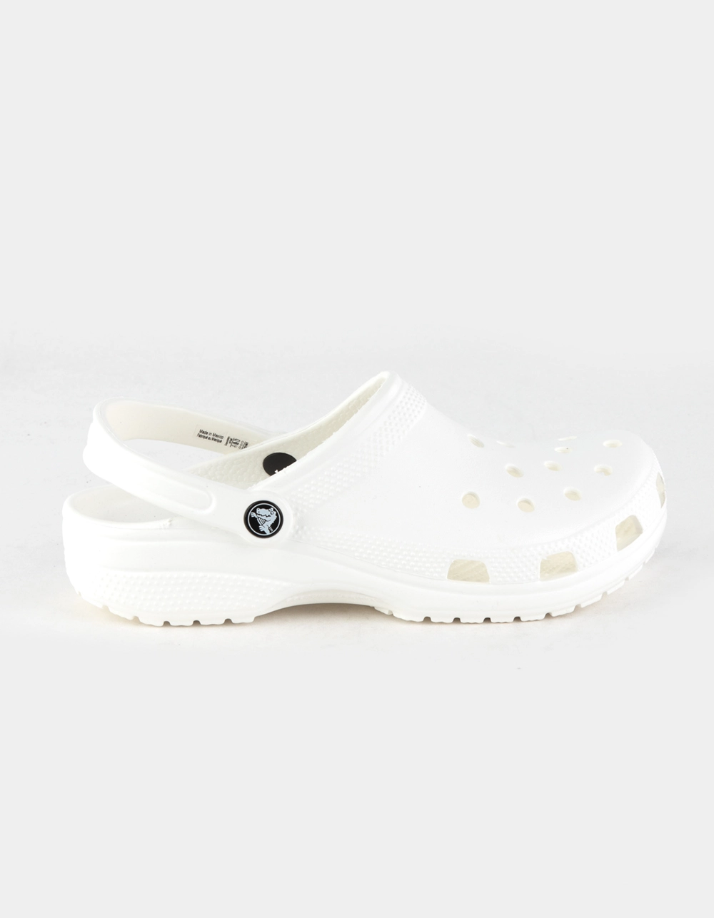 Crocs Classic Clogs. Easy on, easy off! The classic clog offers amazing comfort and support, thanks to the light, durable Croslite™ material and molded design. Customize your Crocs clog however they like; ventilation holes accommodate Jibbitz™ brand charms. Pivoting heel straps for a more secure fit. Easy to clean. Iconic Crocs Comfort™: Lightweight. Flexible. 360-degree comfort. Imported.
