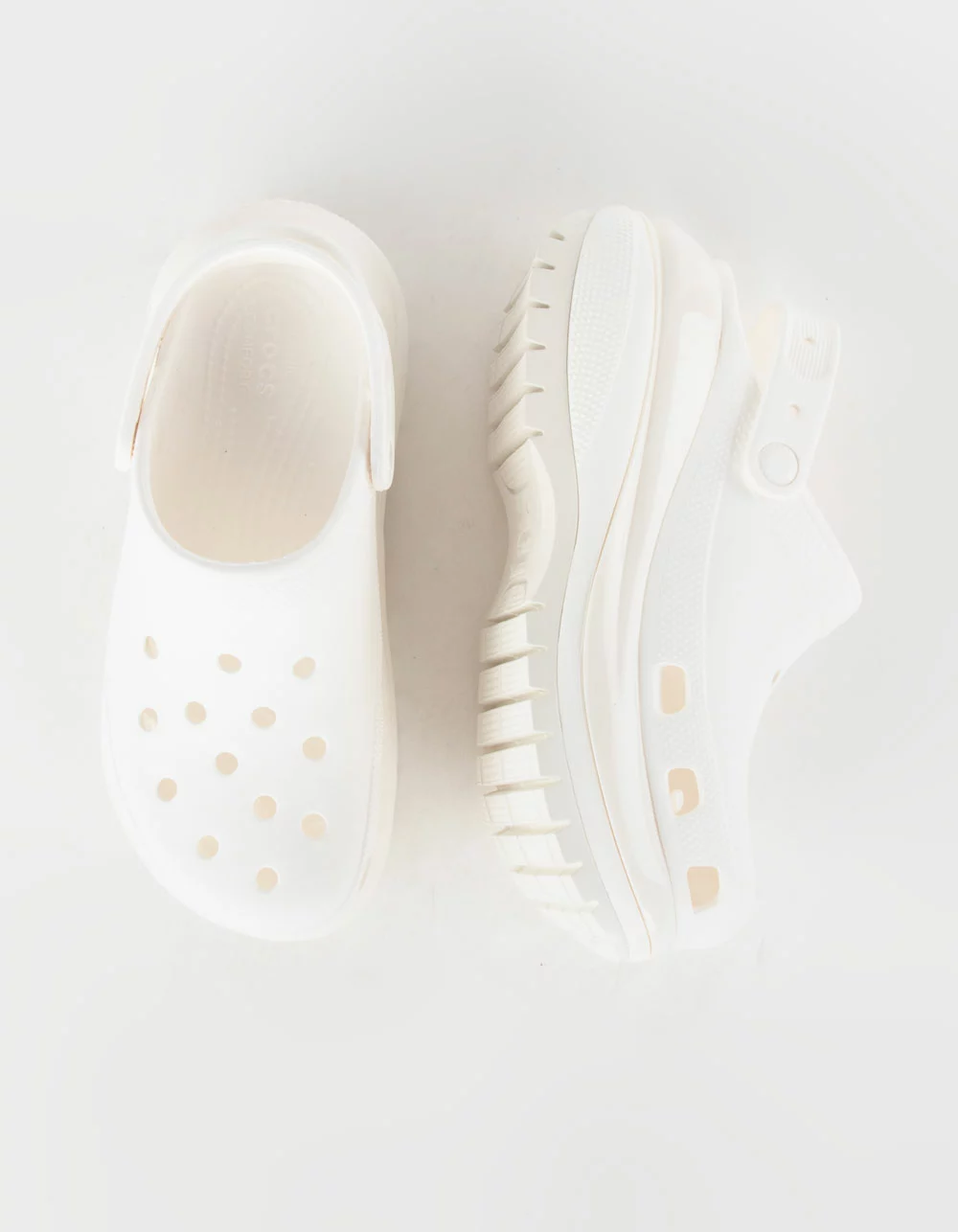 Crocs Mega Crush Classic Clogs. The Classic Clog gets a seriously eye-catching makeover. Introducing the Classic Mega Crush Clog, featuring an enhanced rubber tread, updated detailing around the outsole, and a platform ready to take any outfit to the next level. Even better, the backstrap and upper are built to be personalized with Jibbitz™ charms. Are you ready for your new crush? Unique 2.4-inch / 6.13cm height, measured from floor to heel rest. Updated, enhanced rubber tread. Textured detailing around the heel, toe box and collar. Iconic Crocs Comfort™: Lightweight. Flexible. 360-degree comfort. Imported.
