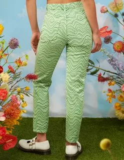 Daisy Street Wavy Mom Jeans. Belt loop waist. Button closure paired with zipper fly. Basic 5 pocket design. All over wavy design. High rise. Tapered fit. Approx. inseam: 28″. 100% Cotton. Machine wash. Imported.