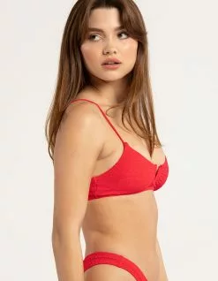Damsel Braided Texture High Leg Bikini Bottoms. Solid color. Mini braided textured fabrication. High leg cut. Cheeky coverage. Thin waist straps. 94% Recycled Polyester, 4% Spandex. Lining: 100% Polyester. Hand wash. Imported.