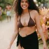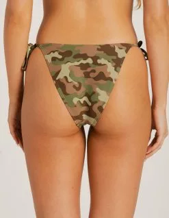 Damsel Camo Texture High Leg Bikini Bottoms. Allover print and texture. Side ties. High leg cut. Cheeky coverage. Fully lined. 83% Recycled Polyester, 17% Spandex. Lining: 100% Polyester. Hand wash. Imported.
