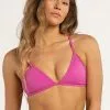 Damsel Crochet Bikini Top. Crochet style triangle top. Slidable cups for to shift for a custom fit. Adjustable neck and back straps. 96% Polyester, 4% Spandex. Lining: 100% Polyester. Hand wash. Imported.