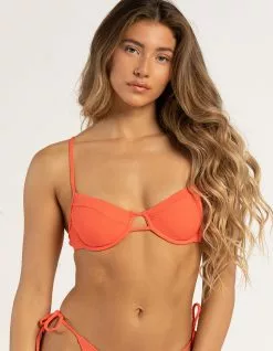 Damsel Textured Double Strap Underwire Bikini Top. Allover texture. Underwire bikini top for extra support. Adjustable spaghetti straps. Adjustable hook closure at back. Removeable bra pads. 93% Polyester, 7% Spandex. Lining: 100% Polyester. Hand wash. Imported.