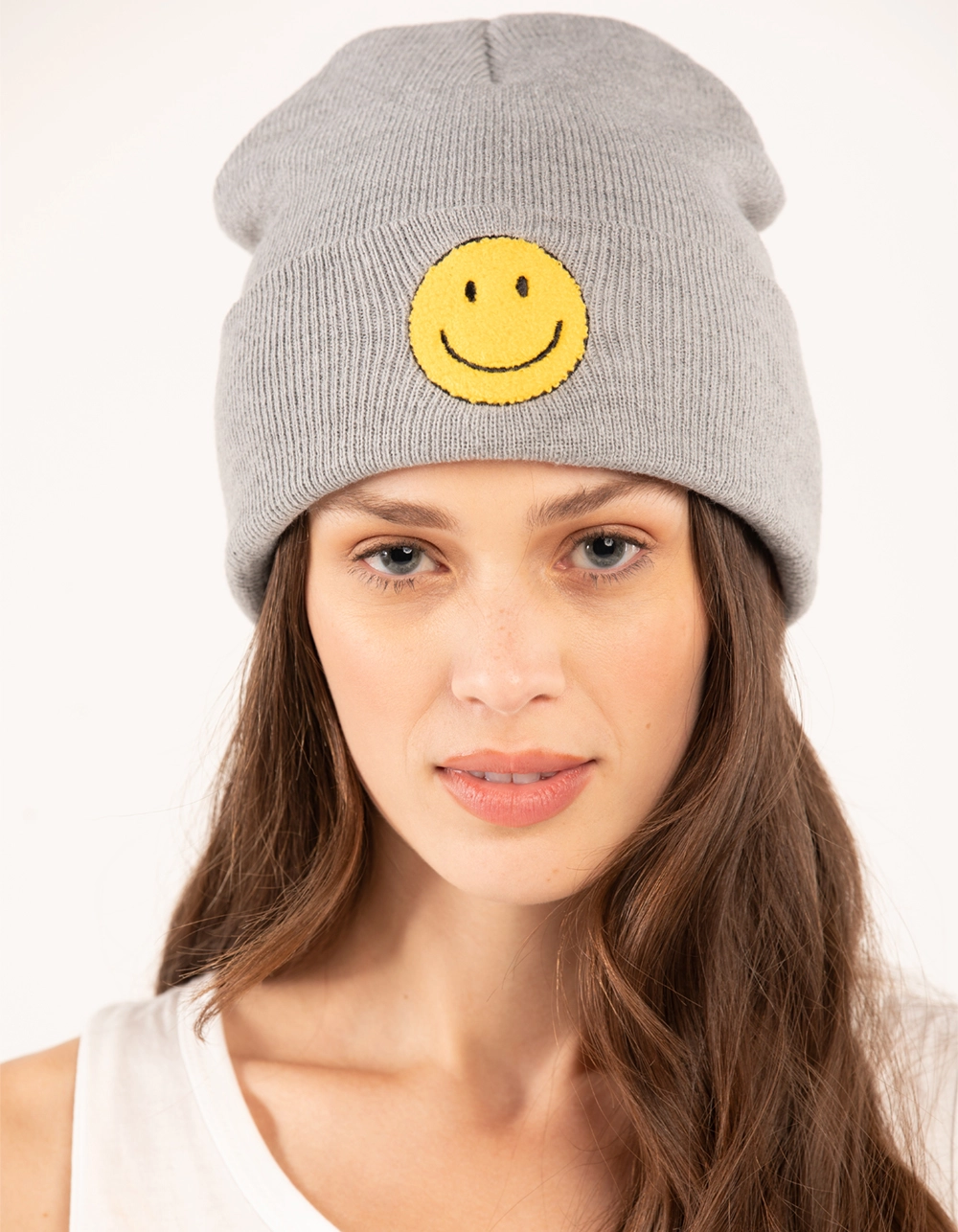 David And Young Happy Face Chenille Beanie. Embroidered logo on cuff. 100% Acrylic. Imported.