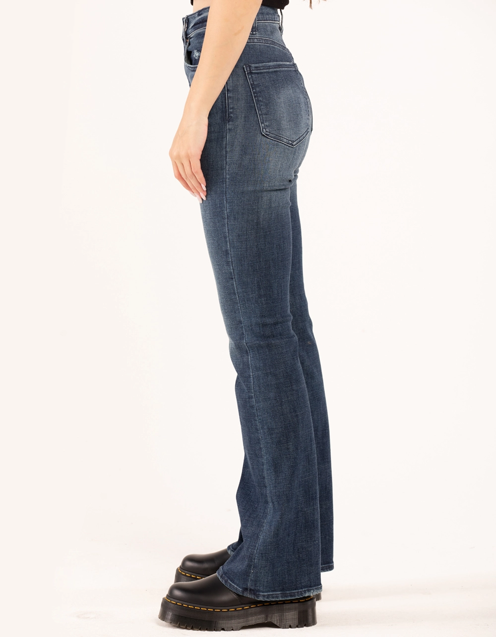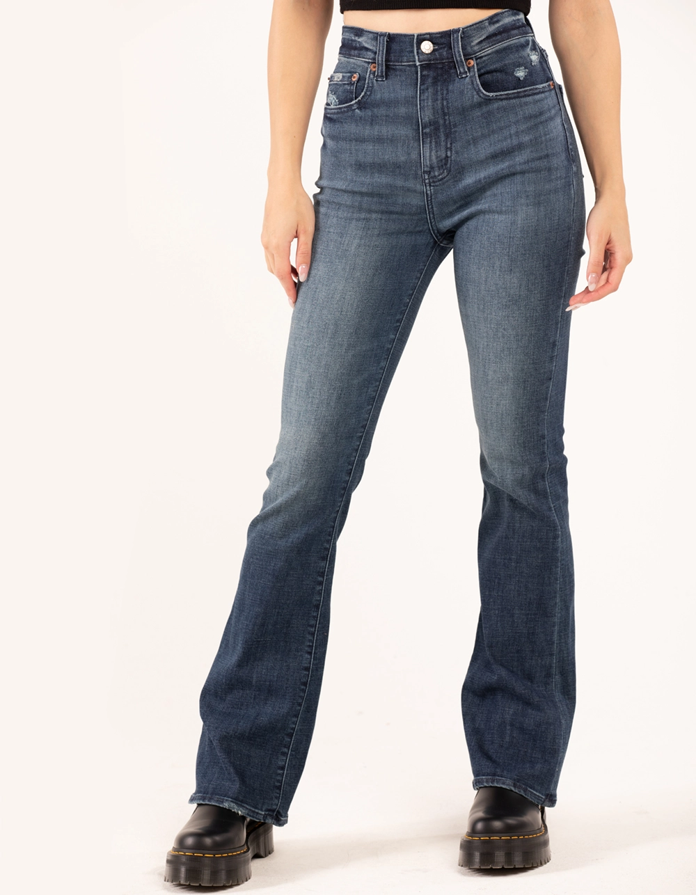 Daze Denim Go Getter High Rise Flare Jeans. The word no isn’t in her vocabulary. The Go-Getter is a slim high rise flare jean with a side slit. Sometimes you need a little bit of everything. Button front. Zip fly. Light destruction. Traditional 5 pocket design. 12″ Rise. Approx. Inseam: 32″. 67% Cotton, 25% Recycled Polyester, 6% Viscose 2% Spandex. Machine wash. Imported.