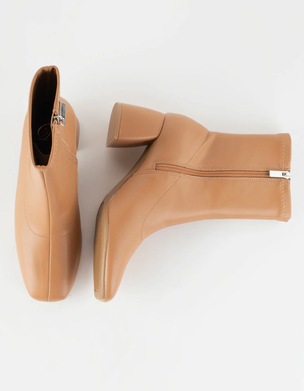 Delicious Square Toe Ankle Booties. Faux leather upper with square toe. Features side zipper closure for easy on/off. Block heel. Rubber tread. Approx. heel height: 2.5″. Imported.