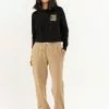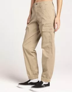 Dickies Cargo Jogger Pants. Slant hand pockets. Dual back patch pockets. Velcro utility pockets at sides. Mid rise waist with elastic back panel. Woven Dickies label at back and side. Elastic cuffs. Jogger fit. Button waist and zip fly. Approx. inseam: 31″. 98% cotton 2% spandex. Machine wash. Imported