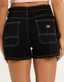 Dickies Carpenter Shorts. These high-waisted shorts are crafted for authenticity with carpenter details, including a hammer loop at the side. The carpenter shorts are finished with contrast stitching and offer a workwear look that stays true to our heritage. 3” inseam. 98% Cotton, 2% Spandex Twill. Machine wash. Imported.