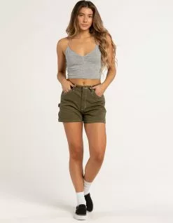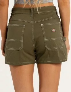 Dickies Carpenter Shorts. These high-waisted shorts are crafted for authenticity with carpenter details, including a hammer loop at the side. The carpenter shorts are finished with contrast stitching and offer a workwear look that stays true to our heritage. 3” inseam. 98% Cotton, 2% Spandex Twill. Machine wash. Imported.