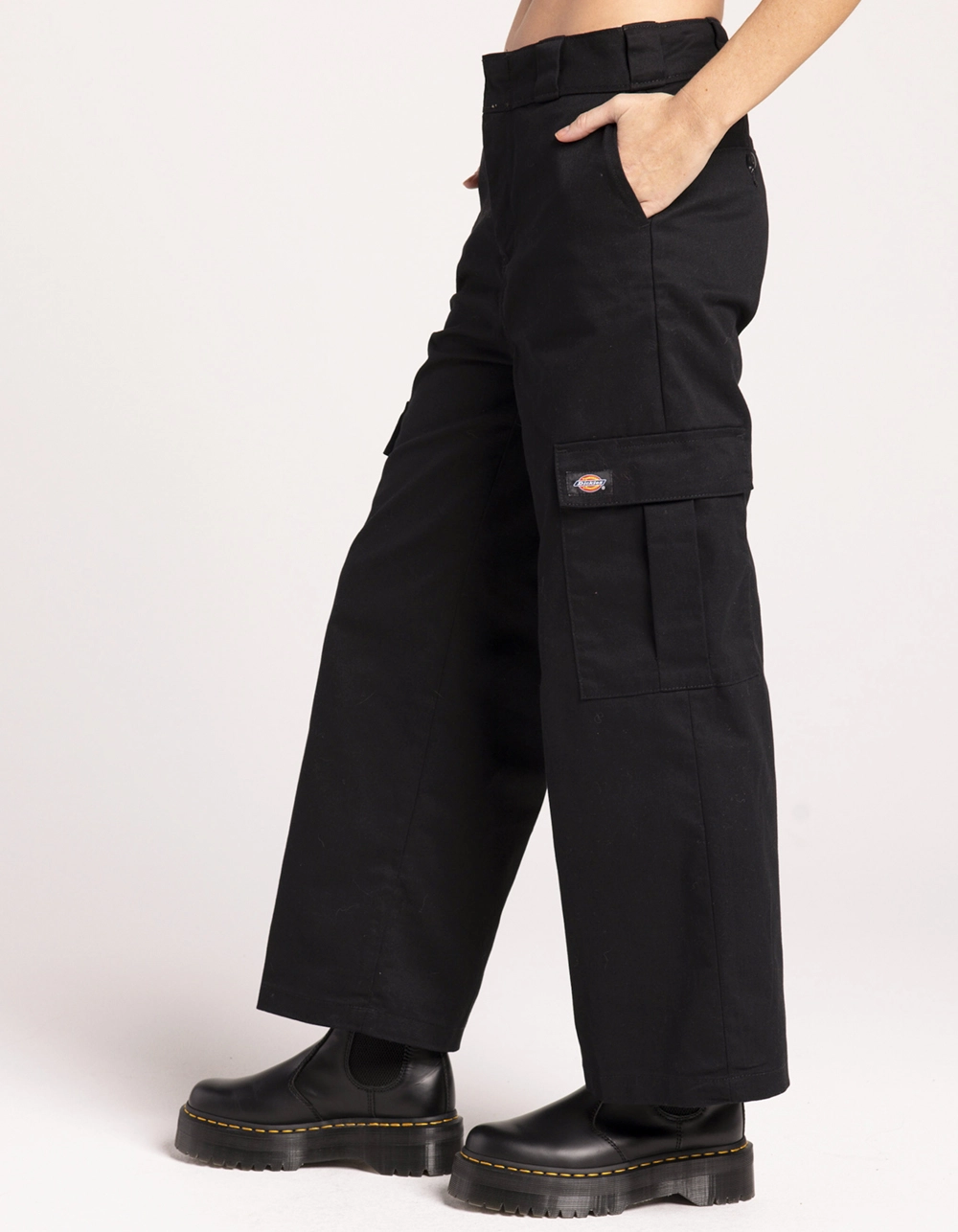 Dickies Women’s Twill Cropped Cargo Pant offers effortlessly cool uniform style with unmatched utility. Inspired by the functional, no fuss work pants Dickies is known for and styled with a distinctive femininity, these cargo pants feature a contoured waistband and wide leg opening. We constructed them out of one of our signature Cotton/Polyester blends that delivers unmatched durability while also providing soft comfort. You’ll find yourself reaching for these year after year, for work and for play. Regular fit. High rise; Wide leg; 26″ inseam. Zip fly. Hook & eye closure. Front slash pockets. Back welt pockets. Dual cargo pockets. Contoured waistband. Tunnel belt loops. 7.25 oz. Brushed Twill. 65% Polyester, 35% Cotton. Machine wash. Imported.