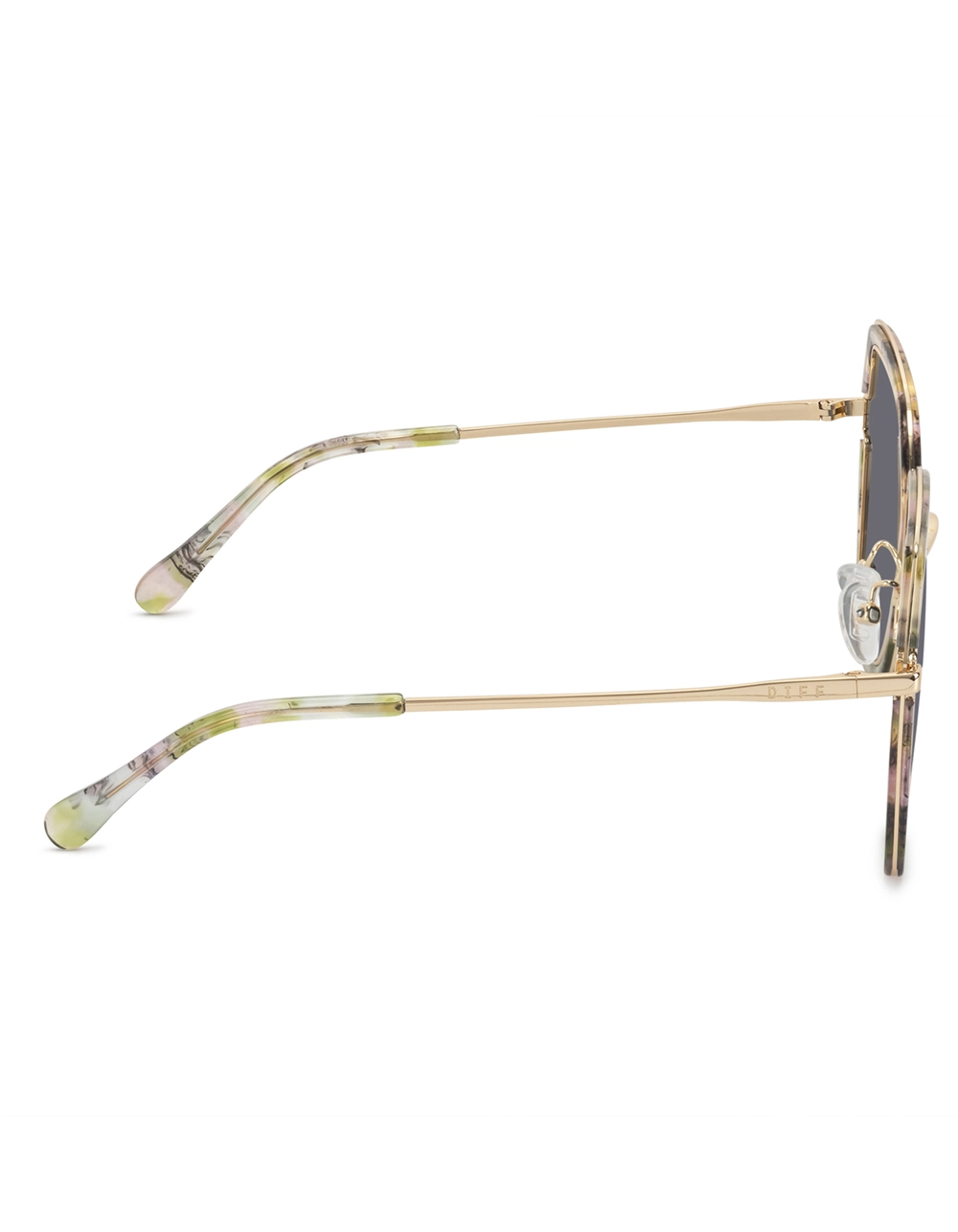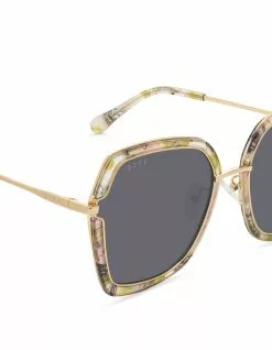 Diff Eyewear Dakota Gold & Gray Sunglasses. Metal arms & nose pads. Dark lenses. Imported. California Residents: https://www.p65warnings.ca.gov/sites/default/files/ws/bw6pt.png WARNING PROP 65: This product can expose you to Bisphenol A (“BPA”), a chemical known to the State of California to cause cancer, birth defects and other reproductive harm. For more information go towww.P65Warnings.ca.gov.
