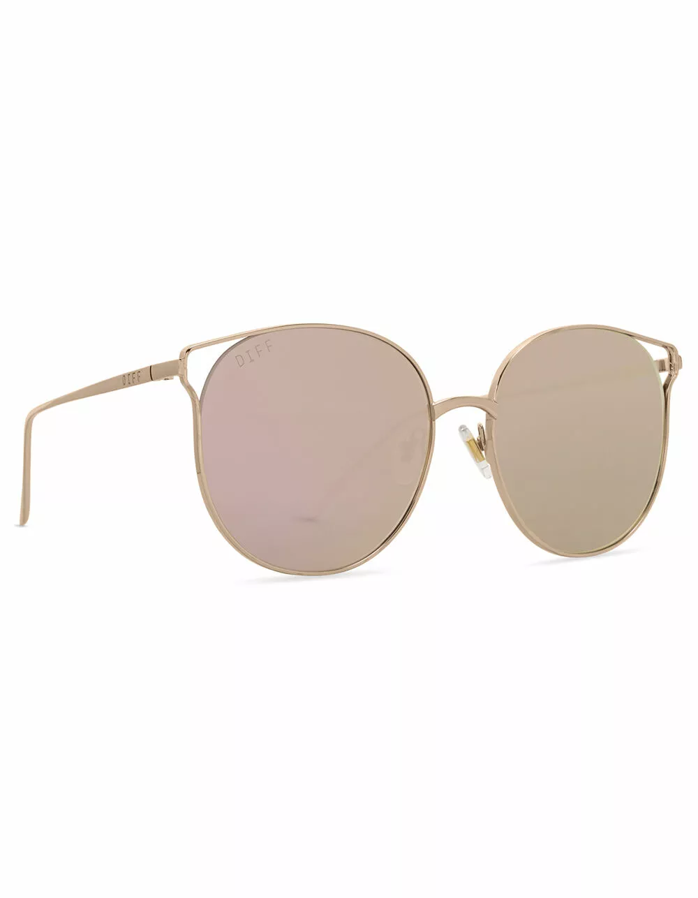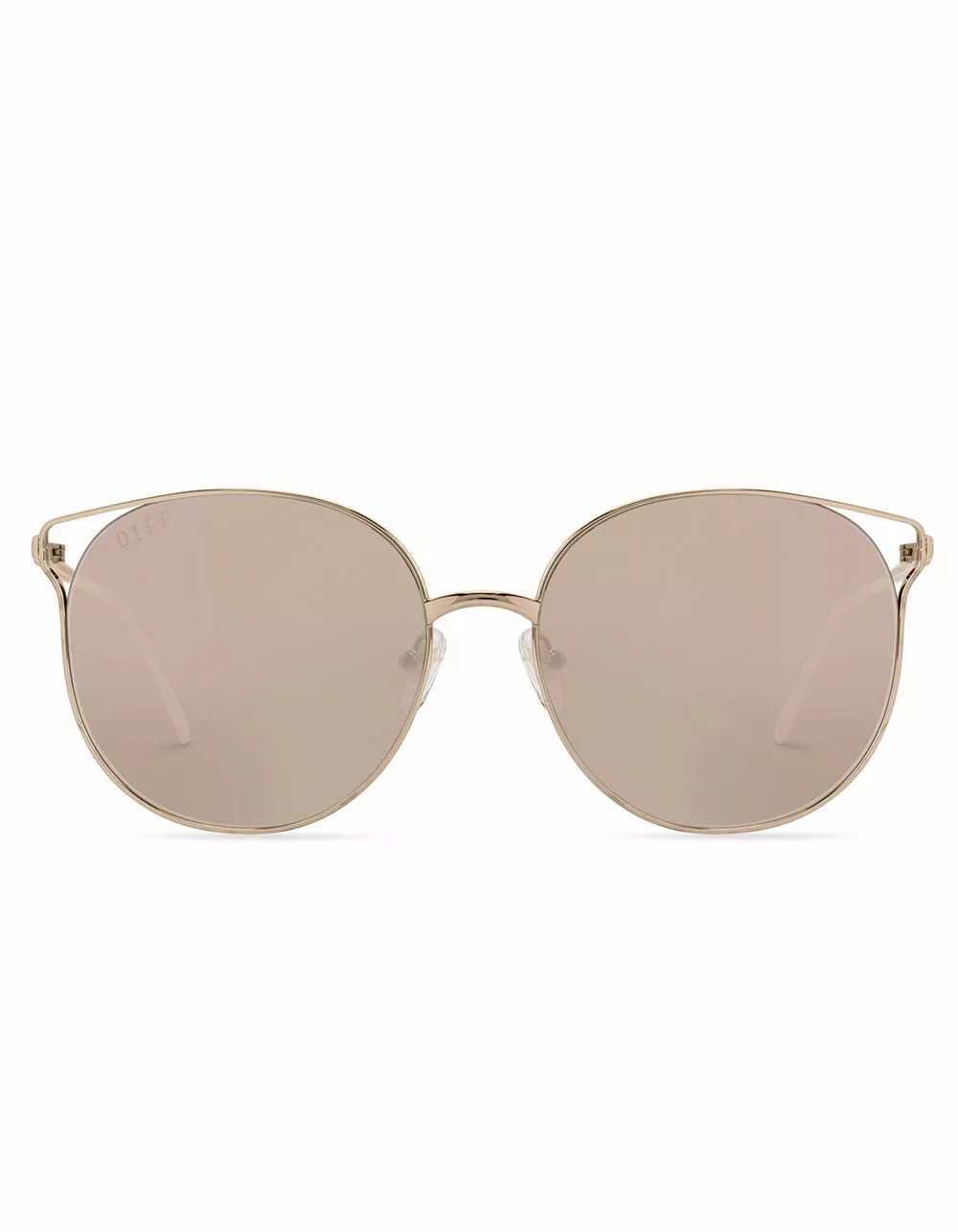 Diff Eyewear Rory Sunglasses. Round oversized lenses are outfitted with metal frames accented with capped tips for a pair of sassy cat-eye shades purr-fect for sunny seasons. Premium scratch resistant mirror lenses. 100% UVA/UVB. Stainless steel frame. Imported.