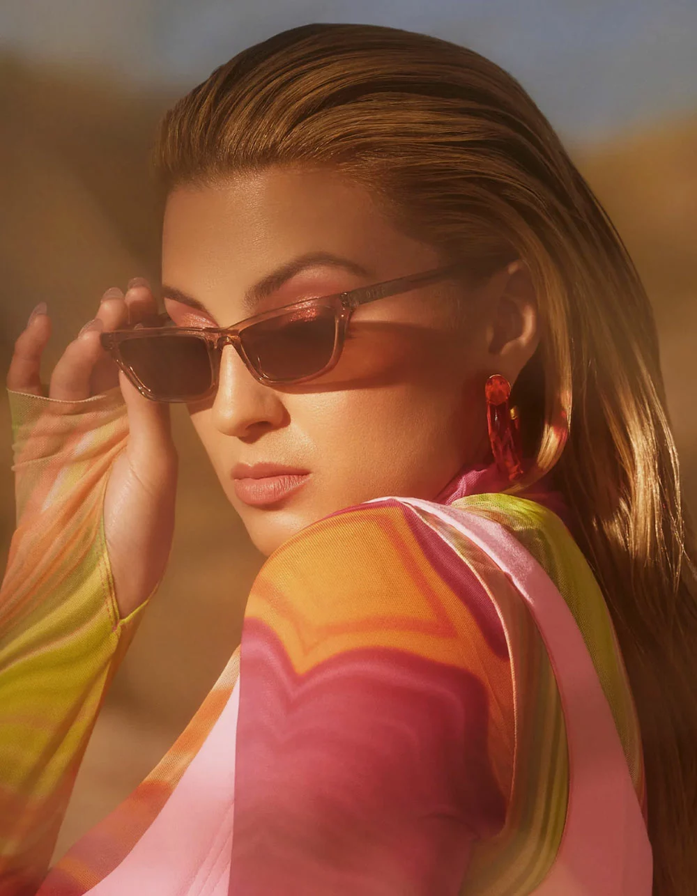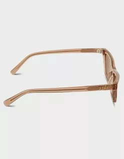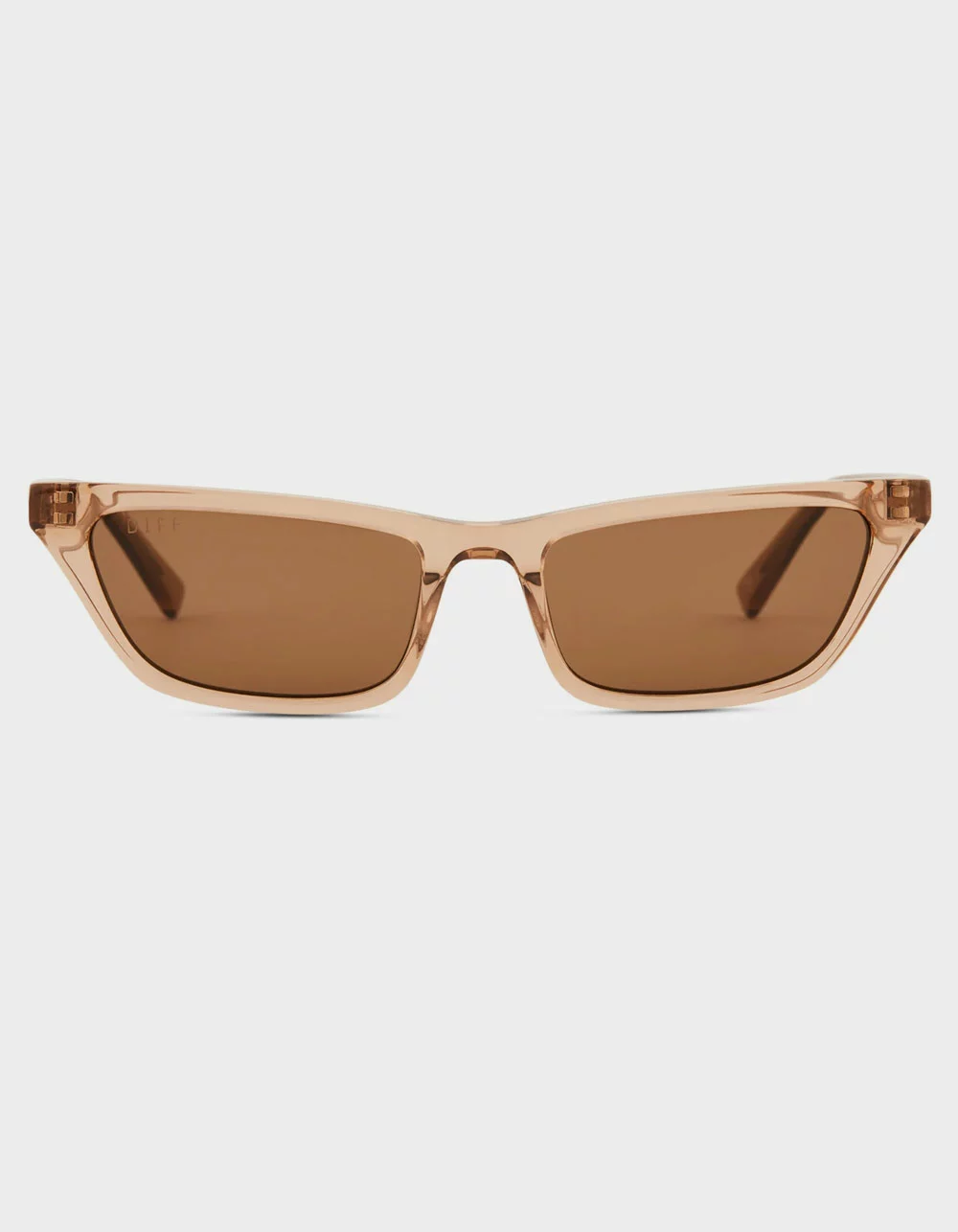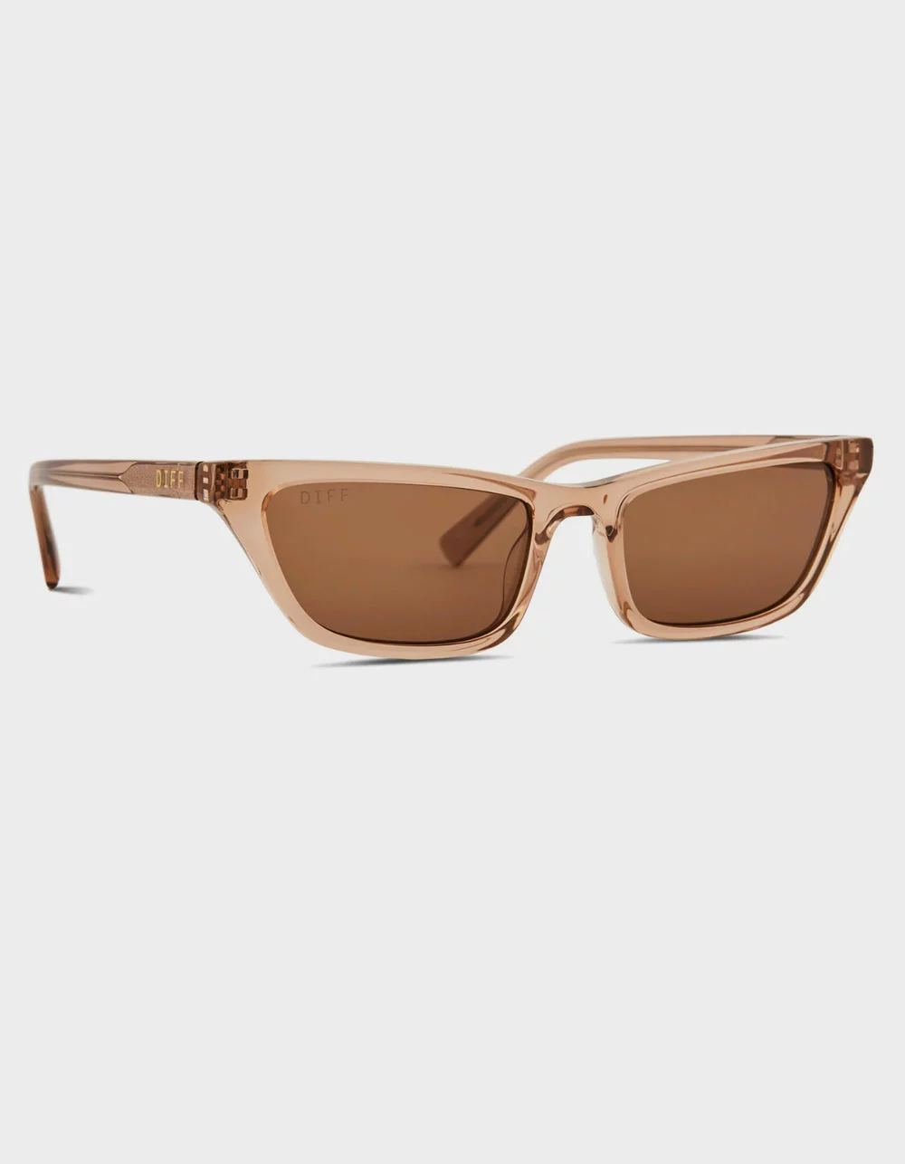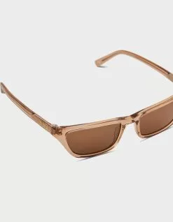 DIFF Eyewear Tori Kelly Futuristic Lover Champagne Sunglasses. Futuristic Lover sunnies take edgy elegance to a new level, with a slim cat eye style and sophisticated colors. Premium scratch resistant polymer. Hand Cut Acetate. Lens Size: Small. Frame Measurements: 51mm-19mm-140mm. 100% UVA/UVB. Imported.