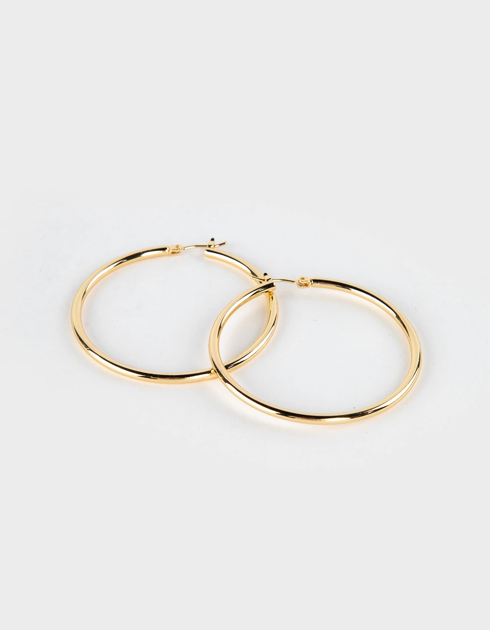 Do Everything In Love 14K Gold Dipped Pin Catch Hoop Earrings. Brass base. Hypoallergenic. Diameter: 4cm. Not intended for children under 12. Imported.