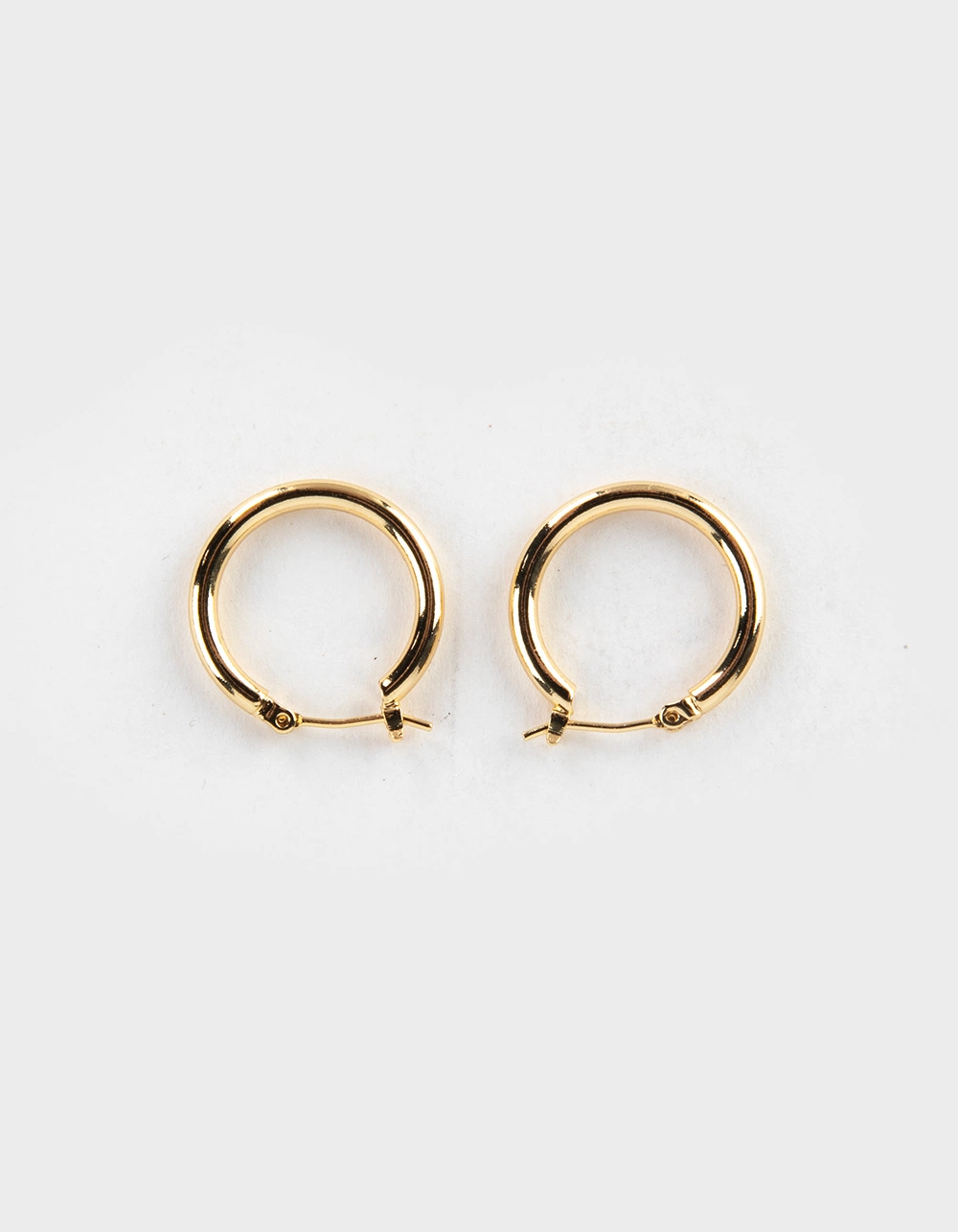 Do Everything In Love 14K Gold Dipped Pin Catch Hoop Earrings. Approximate diameter: 2cm. Brass base. Hypoallergenic. Not intended for children under 12. Imported.