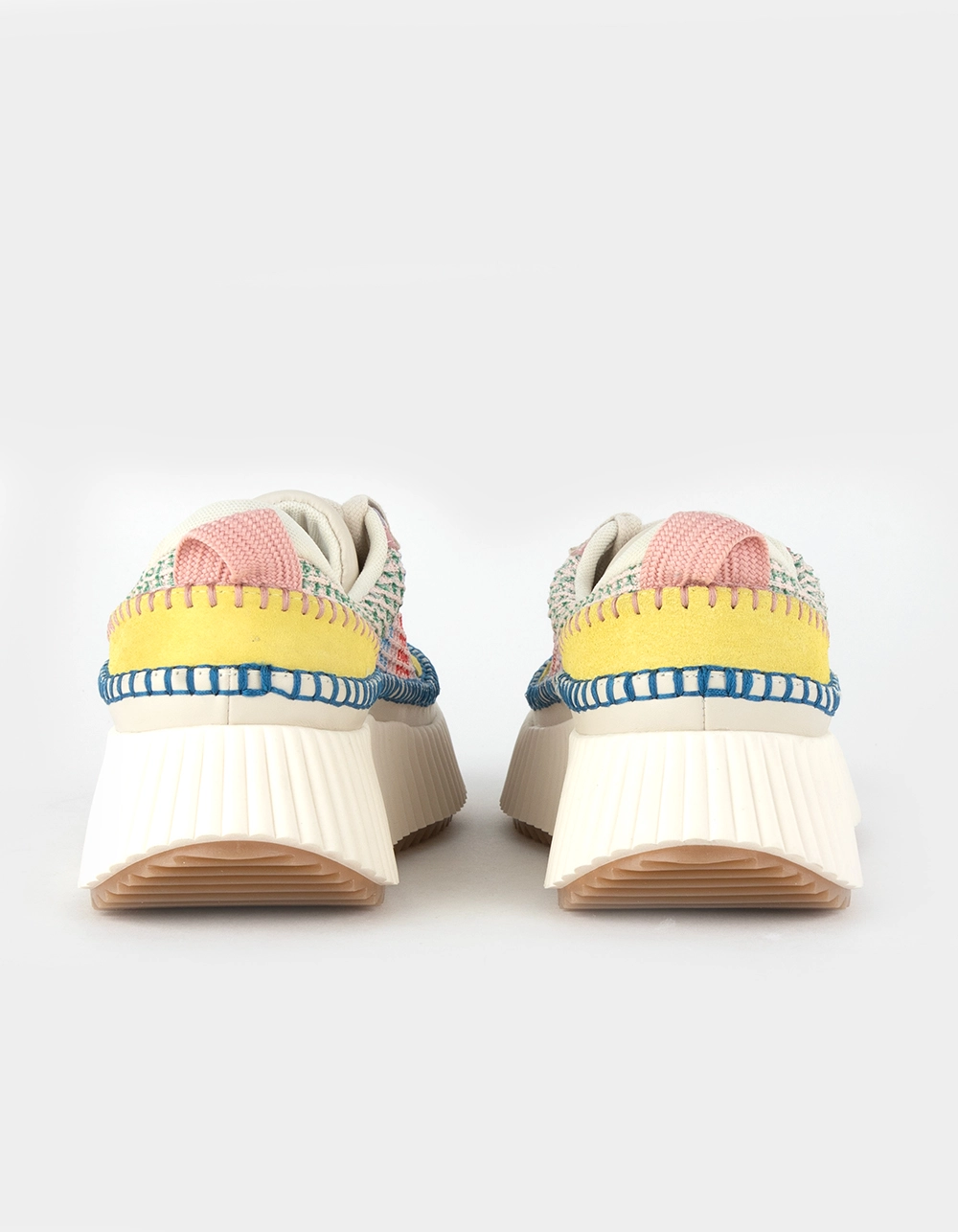 Dolce Vita Dolen Sneakers. The elevated, on-the-go sneaker. Dolen pairs a cool, modern platform sole with a sporty lace-up knit, creating the perfect go-anywhere, do-anything look. Comfy and current, we can’t wait to hit the streets in these. Suede and woven knit upper. Rubber outsole. Textile lining. Synthetic sock. 1.6″ platform height. Imported.