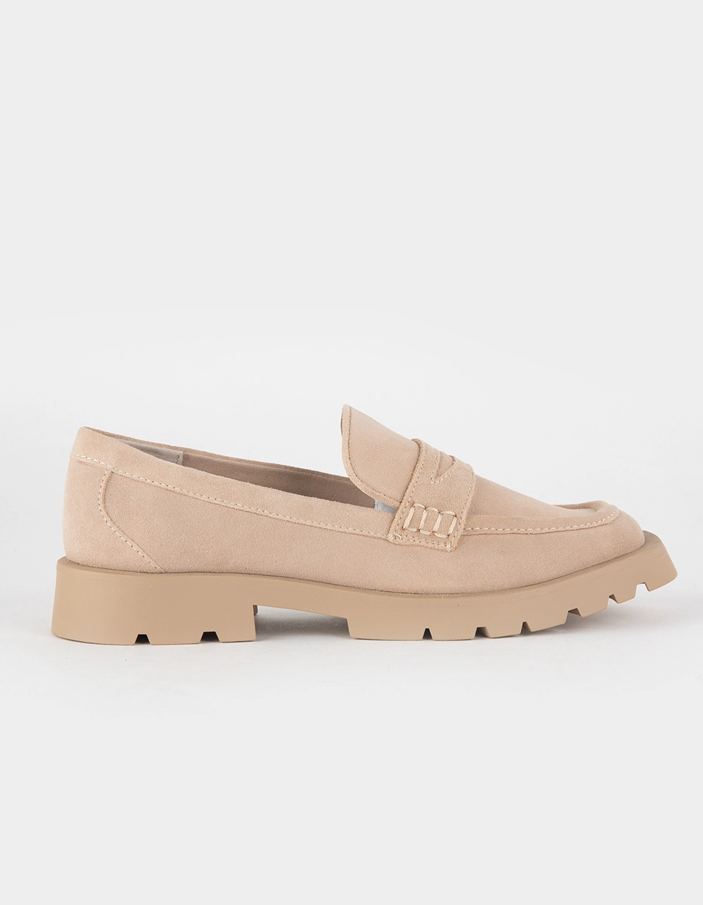 Dolce Vita Elias Loafers. Instant edge. Dial your fall looks up a notch with Elias, a sleek loafer juxtaposed with an ultra-chunky lug sole. And since it’s made with recycled and eco-conscious materials, you can feel good about wearing this style on repeat. Suede upper. Recycled synthetic outsole. Recycled linen lining. Water-based leather alternative sock. Imported.