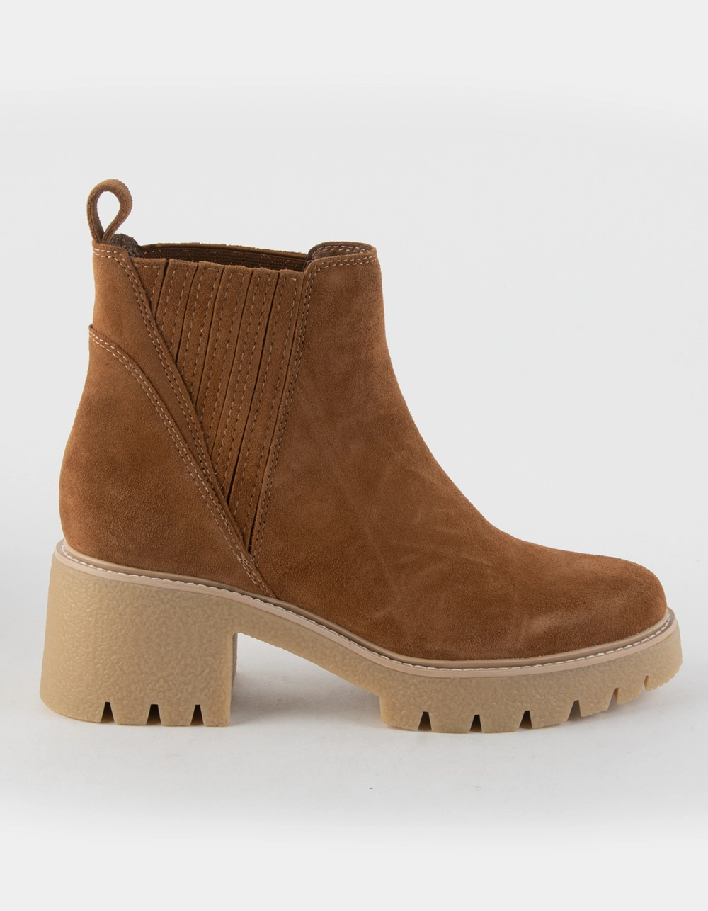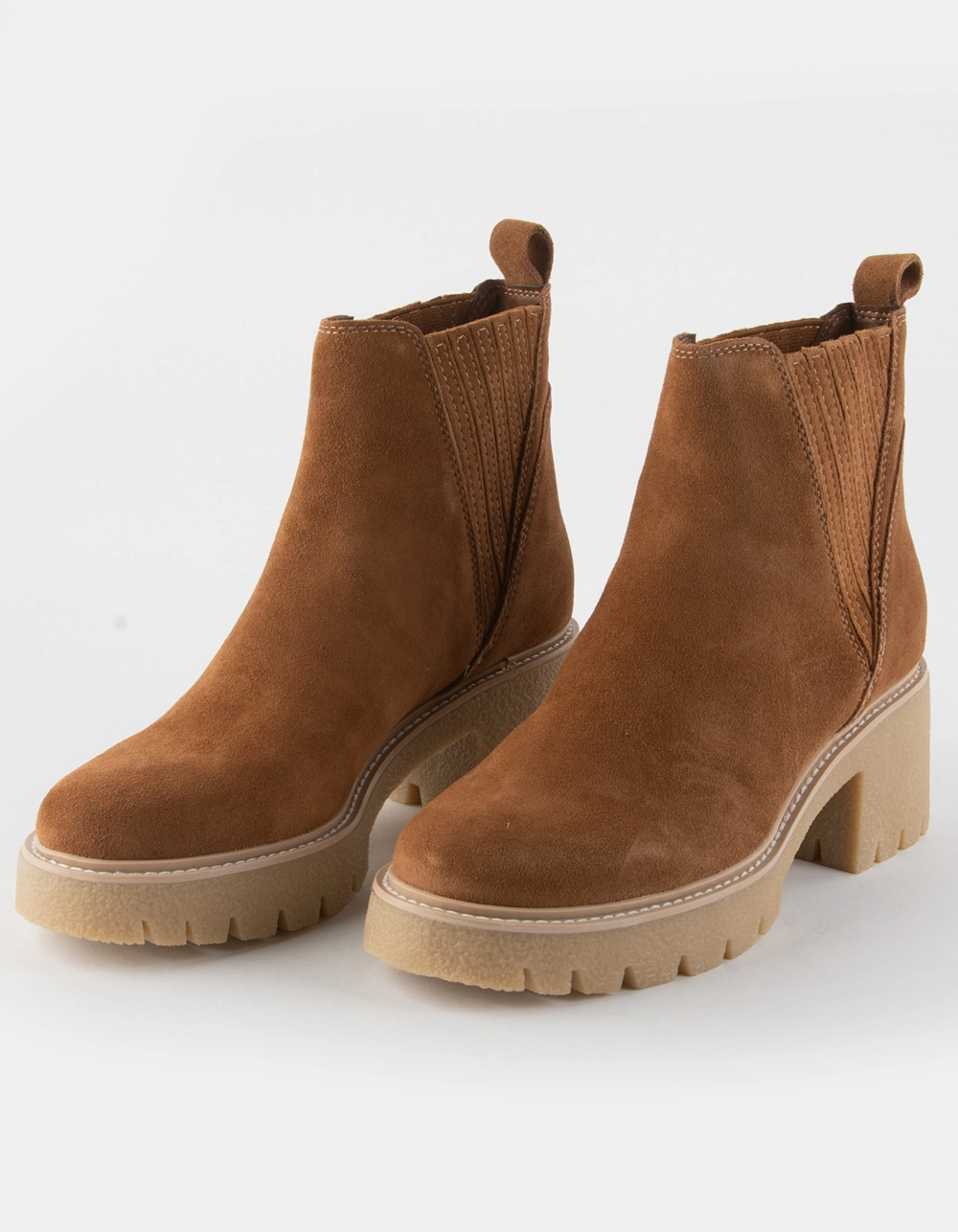 Dolce Vita Harte H20 Boots. Spring showers are no match for our sleek new rain bootie. HARTE H20 brings a super-stylish touch to waterproof wear, complete with chelsea boot-inspired details and a chunky lug sole for puddle-proof action. Suede Upper. Rubber Outsole. Polyester + Synthetic Lining. Synthetic Sock. 7″ Shaft Height. 10″ Leg Circumference. 2.8″ Heel Height. Imported.