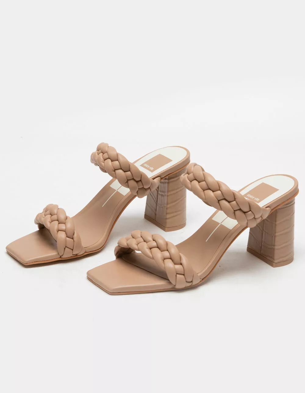 Dolce Vita Paily Braid Heel. Synthetic Upper. Rubber Outsole. Braided straps. Synthetic Lining. 3.2in Heel Height. Imported.