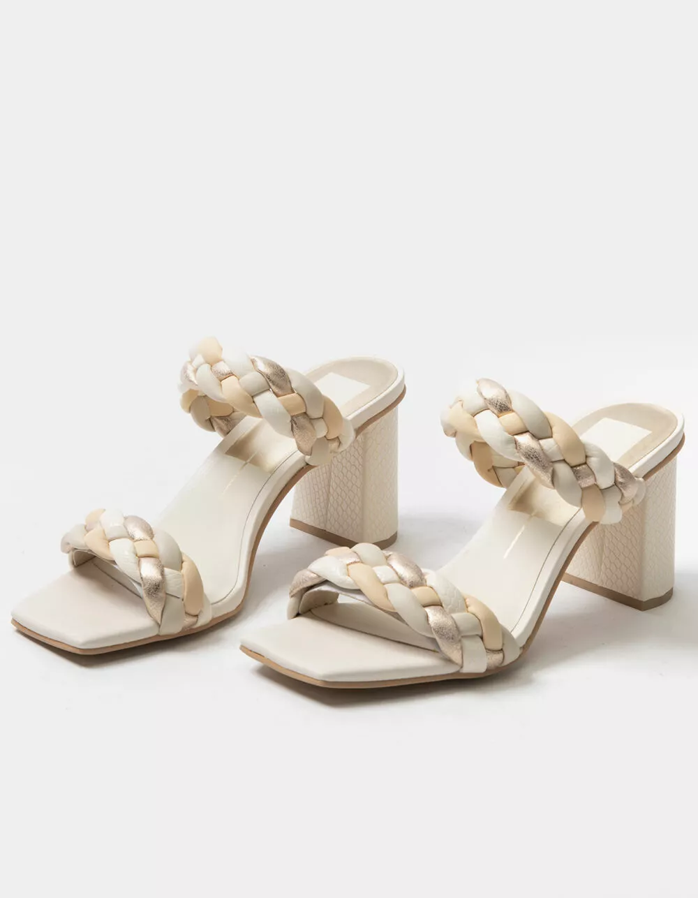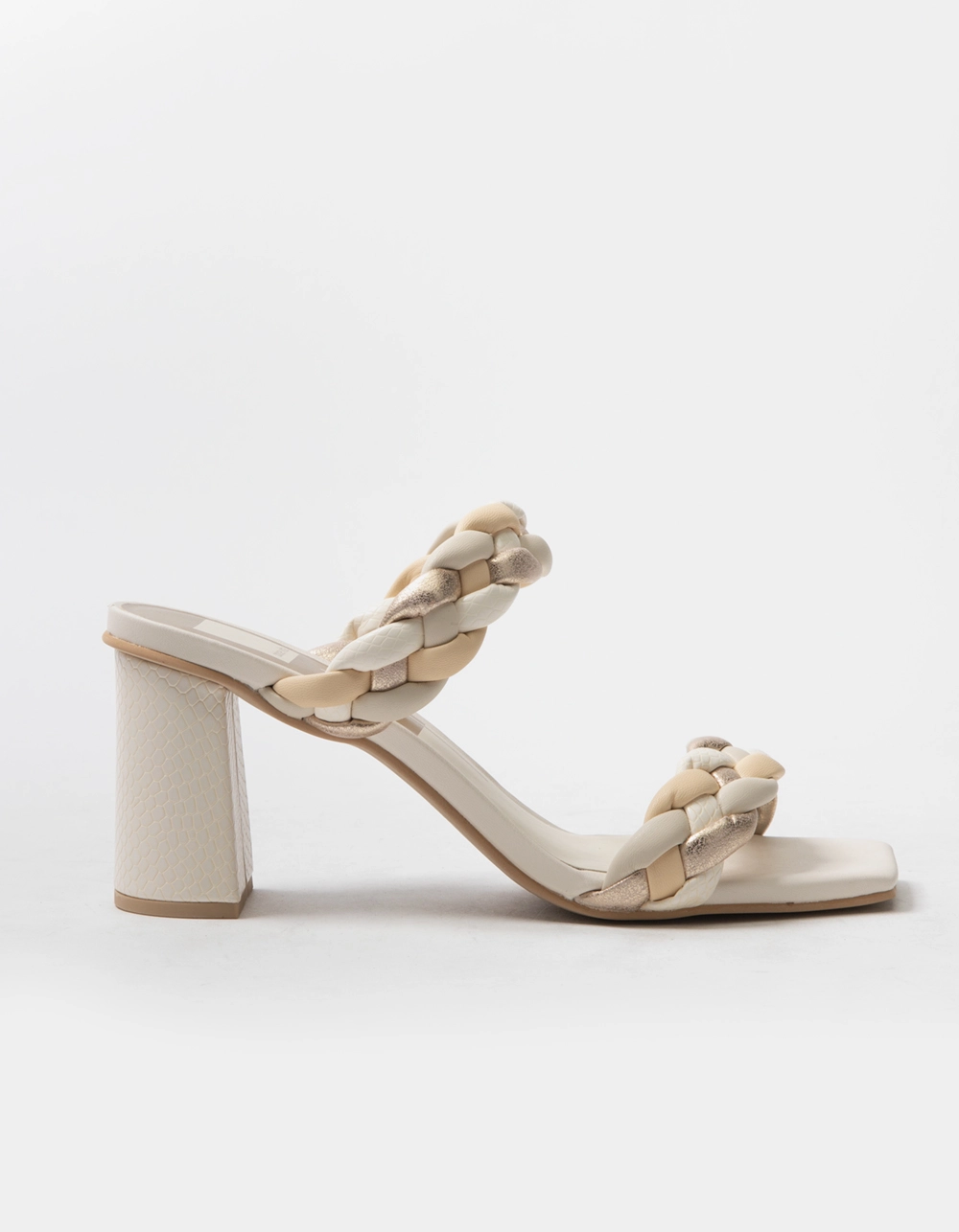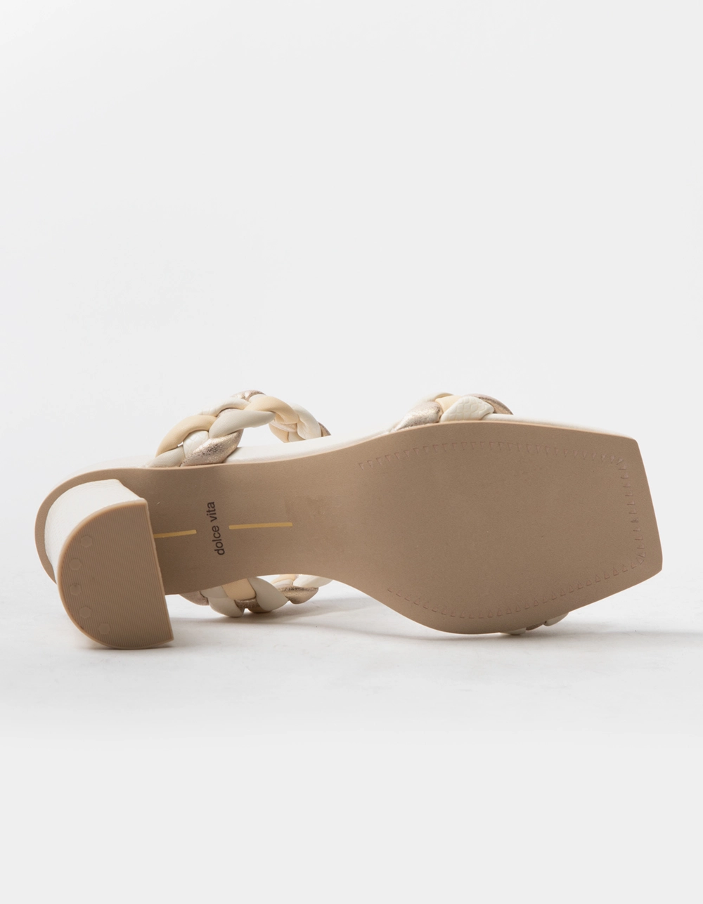 Dolce Vita Paily Braid Heel. Synthetic Upper. Rubber Outsole. Braided straps. Synthetic Lining. 3.2in Heel Height. Imported.