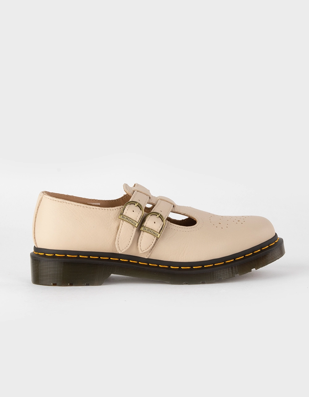 Dr. Martens 8065 Mary Jane Shoes. Back in the 80s, our 8065 shoe turned the tradition of impractical women’s footwear on its head. Fusing a classic T-bar fastening with a rugged AirWair sole, the well-trodden silhouette remains a favorite to this day. This edition stays true to the Original construction, with tough leather and our signature yellow welt stitching. Imported.