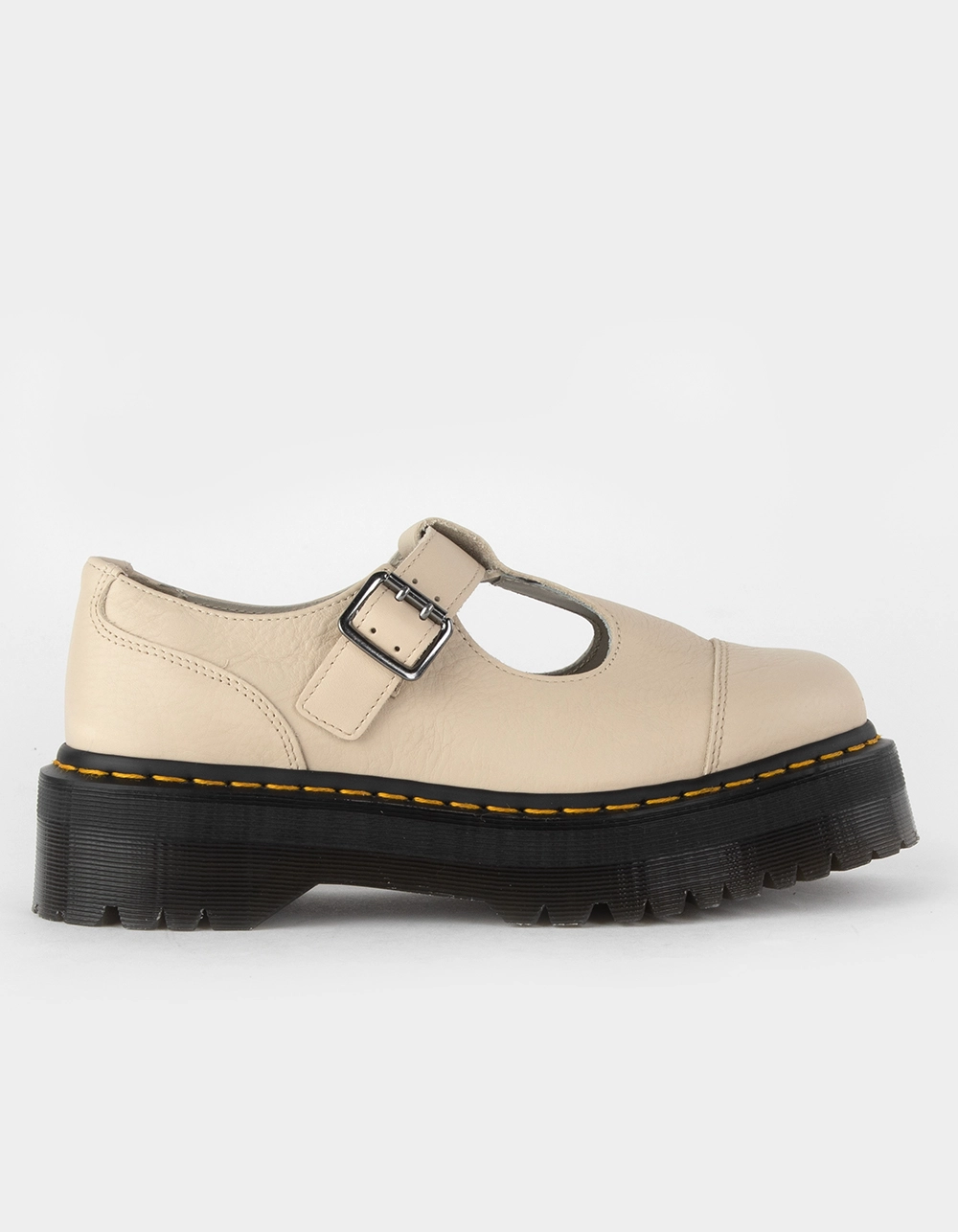 Dr. Martens Bethan Platform Mary Jane Shoes. A subversive staple, the Mary Jane silhouette has been reinvented again and again. The DM’s version dates back to the 80s, and now we’ve reworked it again in standout summer shades. Built from ready-to-wear Pisa leather, the Bethan shoe is stacked on our Quad Retro platform sole and punched with our signature yellow stitching. The T-bar strap is secured with a double gunmetal buckle. Platform height: 1 1/2 in. Heel height: 2 in. Imported.