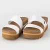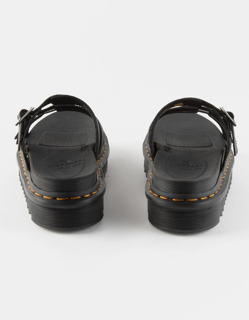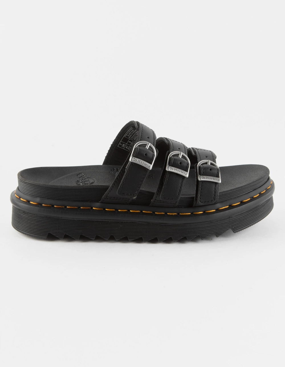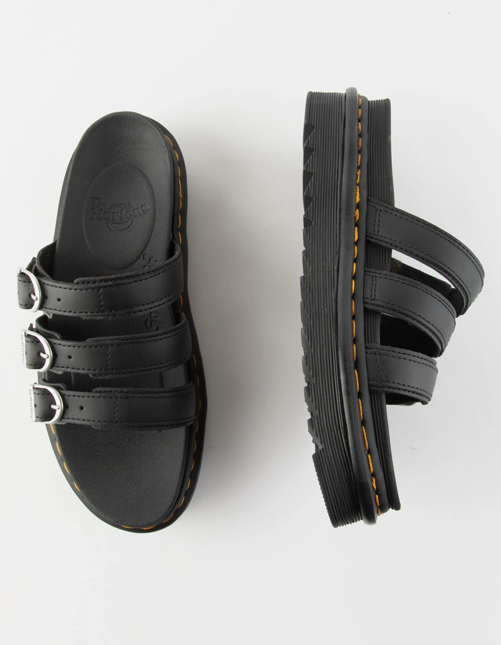 Dr. Martens Blaire Slide sandals. These flatforms sandals feature a leather upper. Arched footbed with a slide wedge. Visible welt stitching. Buckle strap details. Imported.